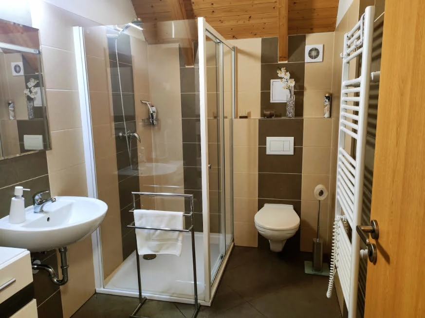 - koupelna se sprchovým koutem, umyvadlem, WC, ručníky, sprchovým gelem a fénem
