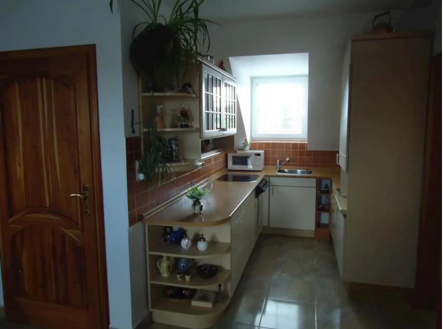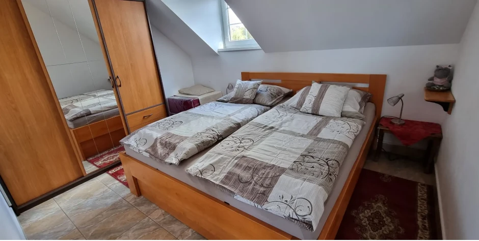 Apartmán se nachází v prvním patře rodinného domu s vlastním vchodem a je k dispozici celoročně. Nabízí kapacitu pro maximálně 3 hosty. Obývací místnost je vybavena televizí se satelitním příjmem, rádiem a pohovkou, která může sloužit jako přistýlka pro jednu osobu. Propojení s kompletně zařízenou kuchyní a jídelním koutem zajišťuje pohodlí během pobytu. Manželská postel v ložnici zaručuje příjemný odpočinek. Součástí apartmánu je koupelna se sprchovým koutem, toaletou, bidetem a pračkou.