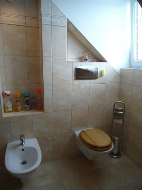 Toaleta, sprcha, umyvadlo, pračka, fén, sušák na prádlo, ručníky, bidet