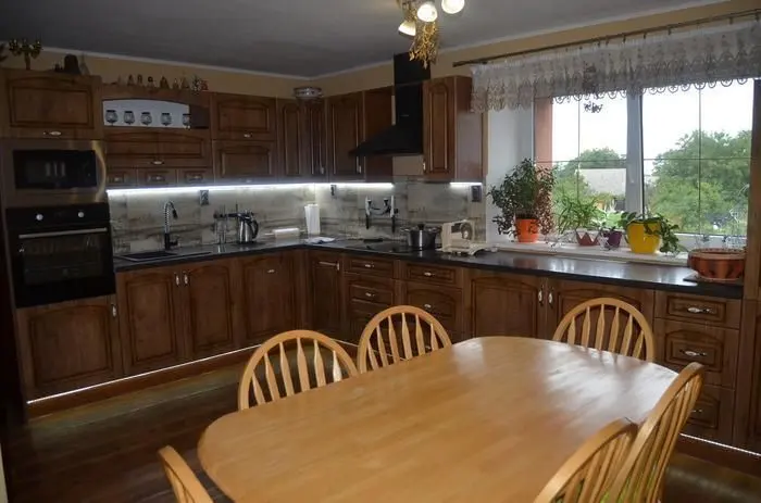 Elektrická trouba, Indukční varná deska, Mikrovlnná trouba, Rychlovarná konvice, Lednička, Mraznička, Kávovar, Myčka nádobí, Jídelní sezení