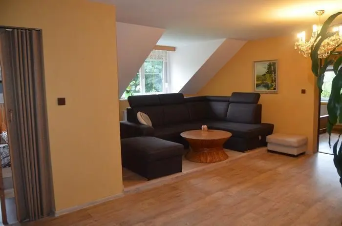 - Obývací pokoj je prostorný a vybavený rozkládacím gaučem , který slouží jako přistýlka pro dvě osoby.