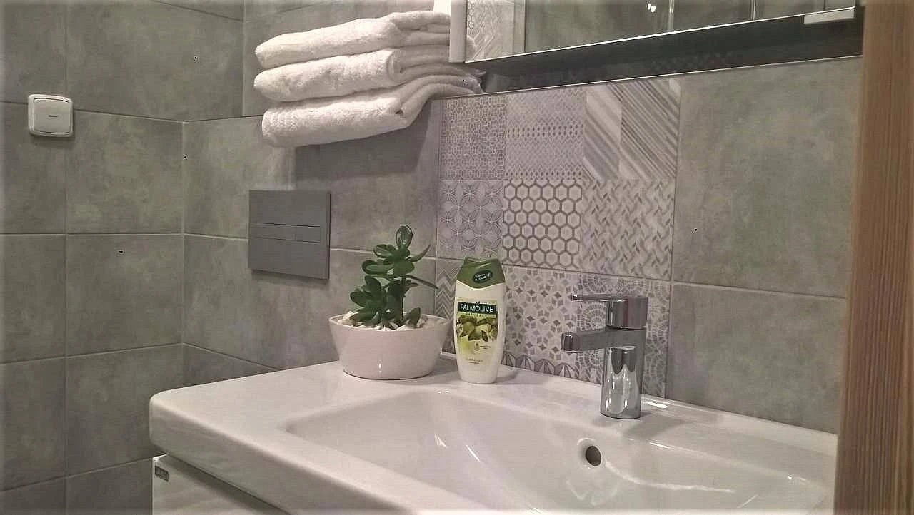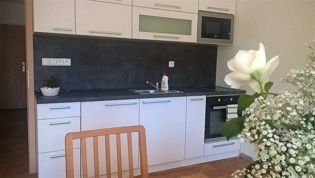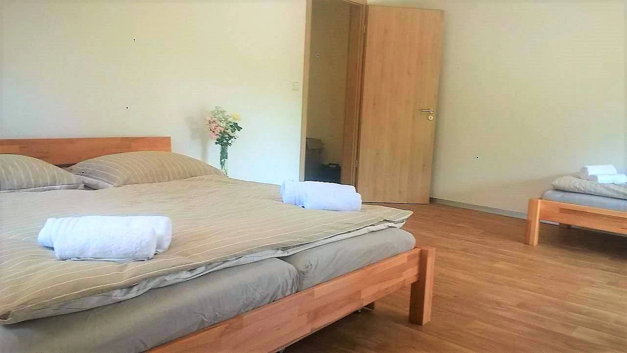 Ložnice, pokoje a další místnosti: Nabízíme vám k ubytování nadstandardně a vkusně zařízený apartmán, který zajišťuje maximální pohodlí a příjemnou atmosféru. Je ideální pro rodiny s dětmi nebo skupinu přátel. Ložnice spolu s obývacím pokojem a kuchyňským koutem zabírají plochu 64 m² a poskytují ubytování až pro 6 dospělých osob (nebo 4 dospělé a 2 děti). Apartmán je vybaven podlahovým vytápěním, automatickými venkovními žaluziemi, vstupními kódy a WiFi. Nová kuchyňská linka obsahuje mikrovlnnou troubu, pečicí troubu, sklokeramickou desku, kávovar na kapsle Tchibo, topinkovač, lednici a varnou konvici. Děti jsou vítány, a proto je k dispozici dětská postýlka a židlička. V ložnici najdete jednu manželskou postel a dvě samostatné postele, v obýváku je rozkládací sedačka. Samozřejmostí je TV s množstvím programů. Ložní prádlo a ručníky jsou zahrnuty v ceně apartmánu.