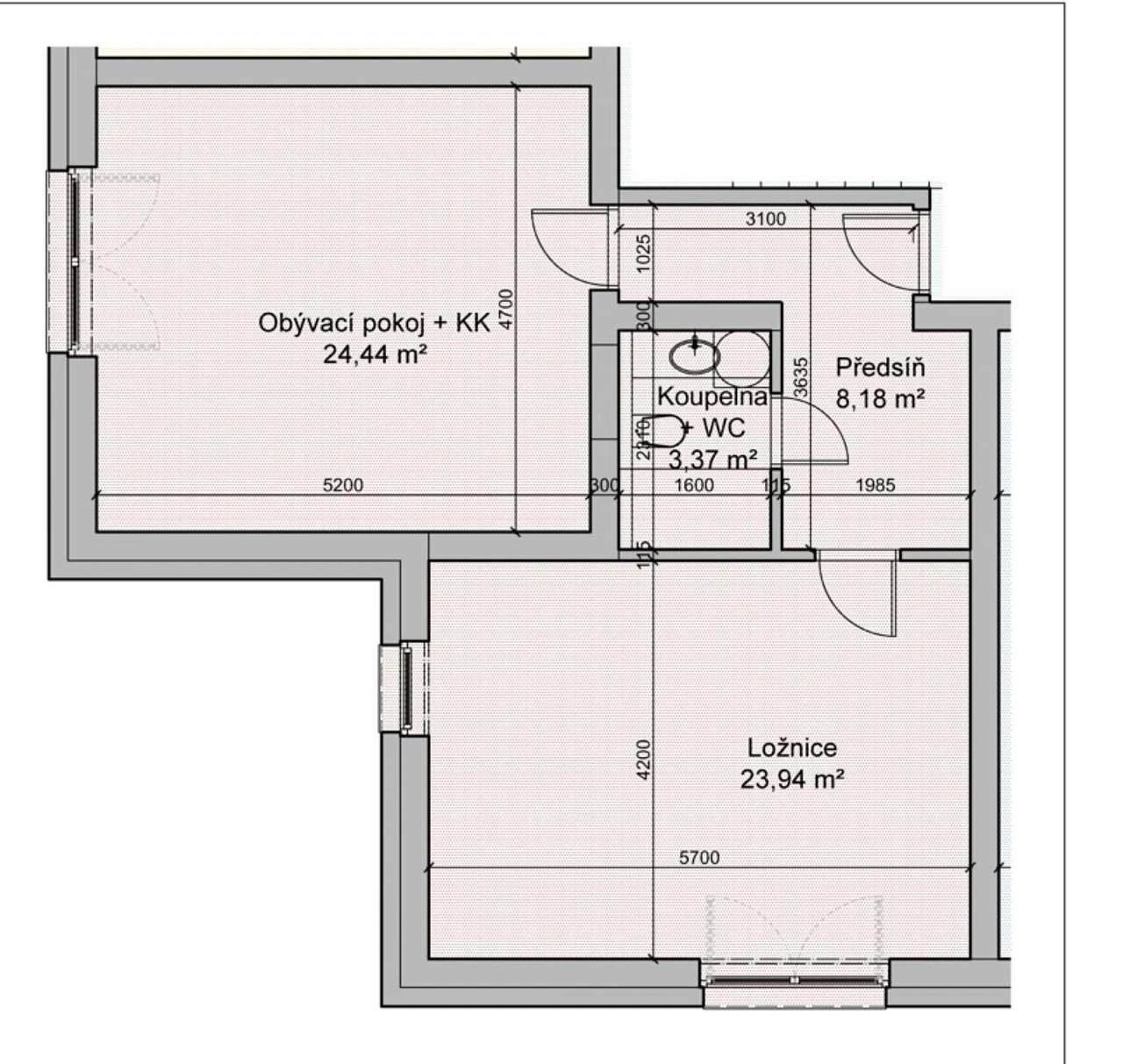 Sociální zařízení: Koupelna s WC a sprchovým koutem.