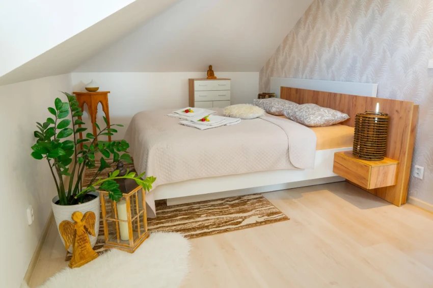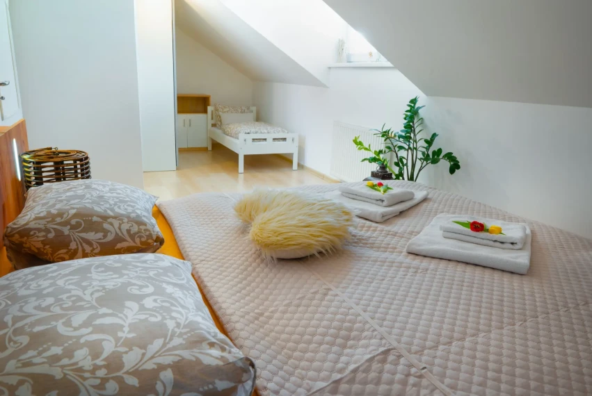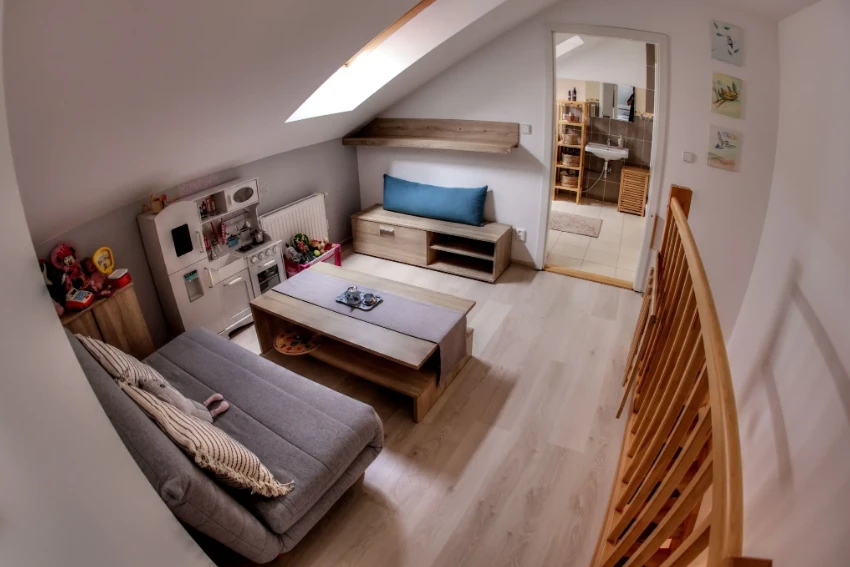 Apartmán je situován ve druhém nadzemním podlaží bytového domu a jeho součástí je podkroví. Hosté mají k dispozici velkou terasu s výhledem na město, dvě koupelny (jedna s vanou, druhá se sprchovým koutem), plně vybavenou kuchyni, klimatizaci a WiFi připojení zdarma. Objekt je vhodný pro rodiny s dětmi i spřátelené páry.