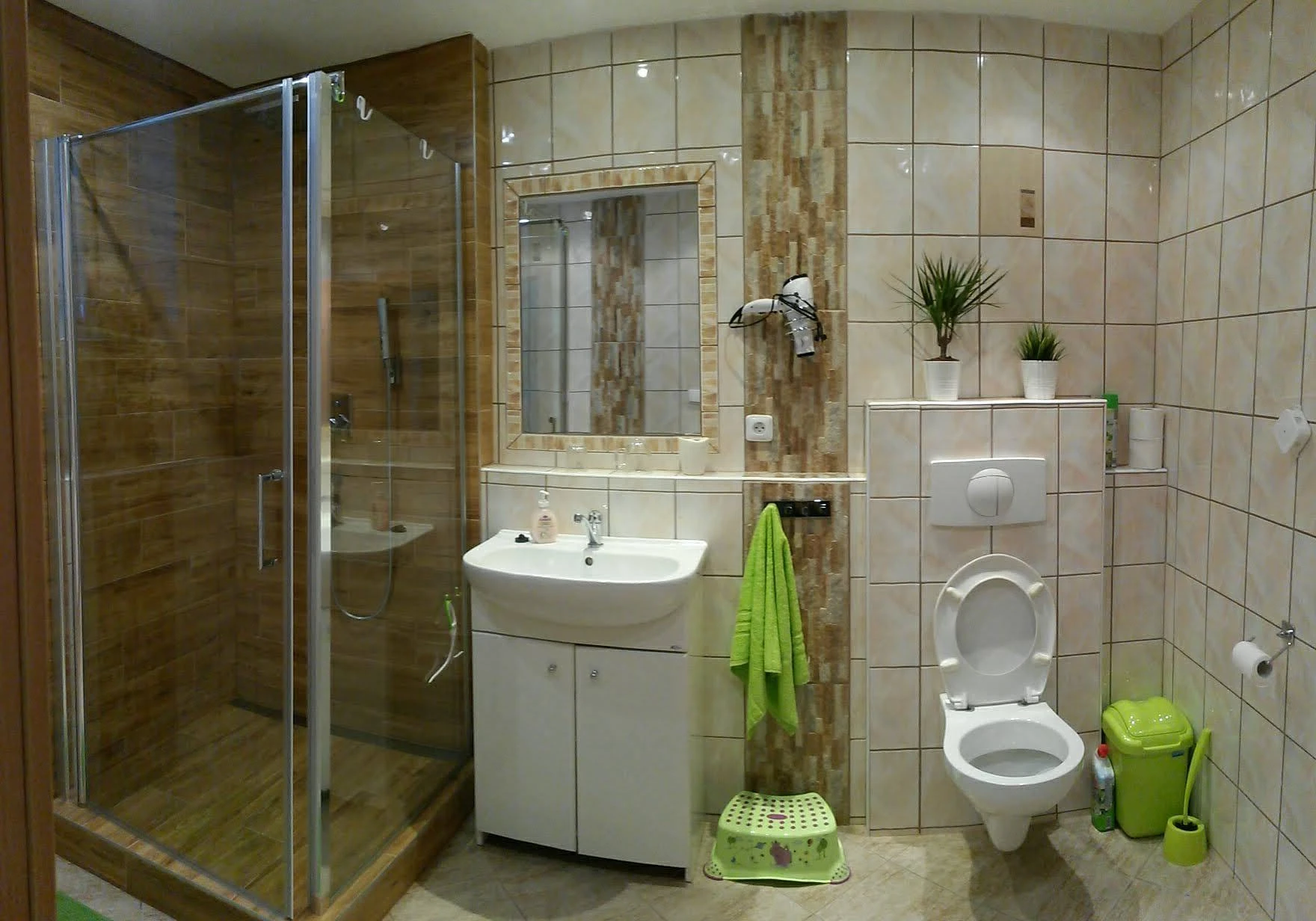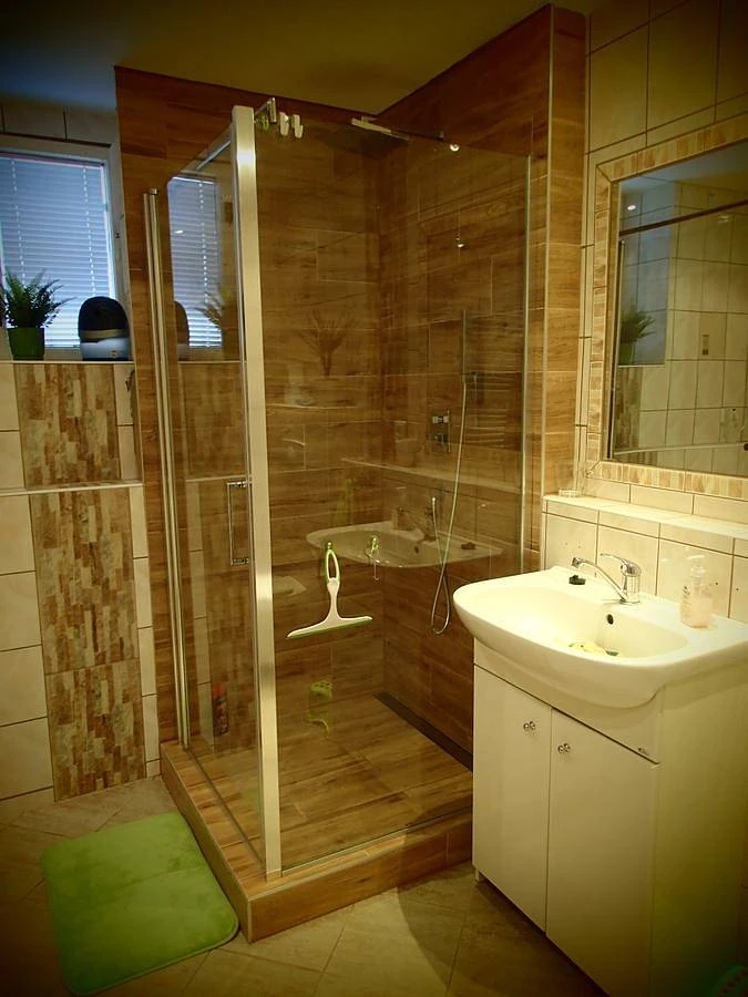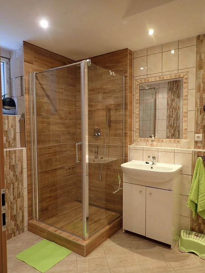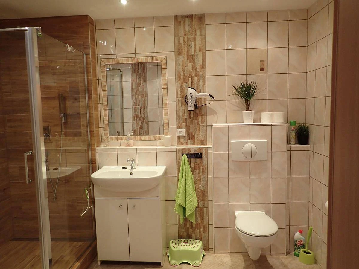 Apartmán je vybaven dvěma samostatnými koupelnami, každá se sprchovým koutem, což zajišťuje pohodlí pro všechny hosty.
