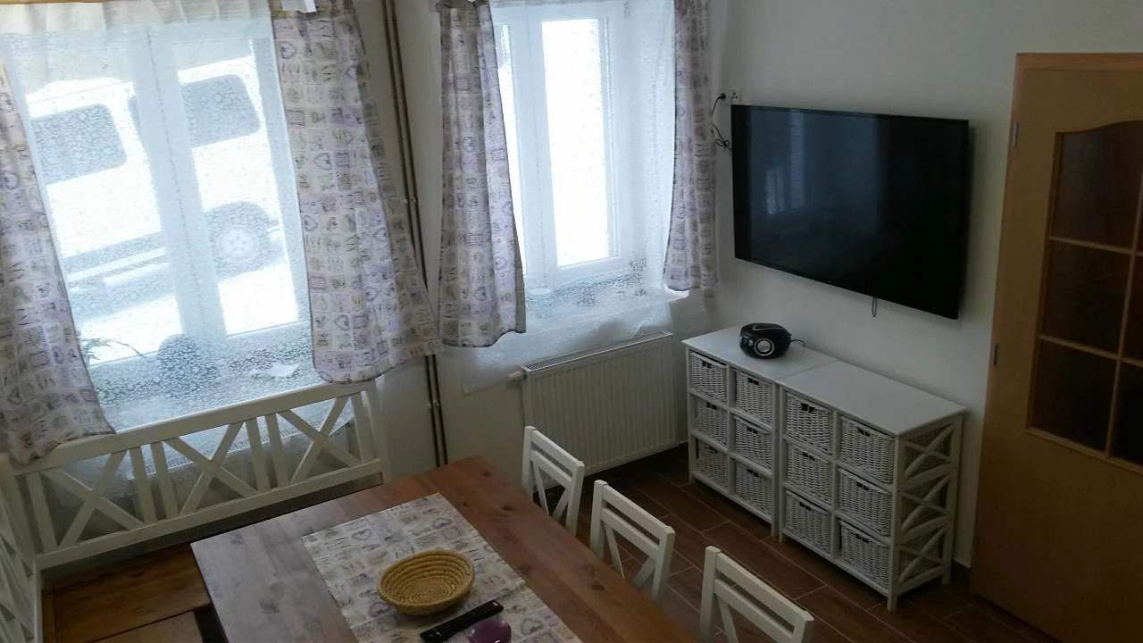 Doprava a parkování: Apartmán nemá vlastní parkovací místa, ale hosté mohou využít bezplatné parkování na městském parkovišti, které se nachází cca 250 metrů od apartmánu.