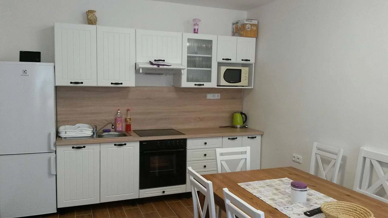 Apartmán je kompletně vybaven veškerým potřebným nábytkem, nádobím a elektrospotřebiči, což zajišťuje pohodlný pobyt pro hosty. Kuchyňská linka je vybavena nádobím, sklokeramickou varnou deskou, elektrickou troubou, lednicí, rychlovarnou konvicí a mikrovlnnou troubou. Pro zábavu a spojení s okolním světem je k dispozici WiFi připojení a velká plochá televize.