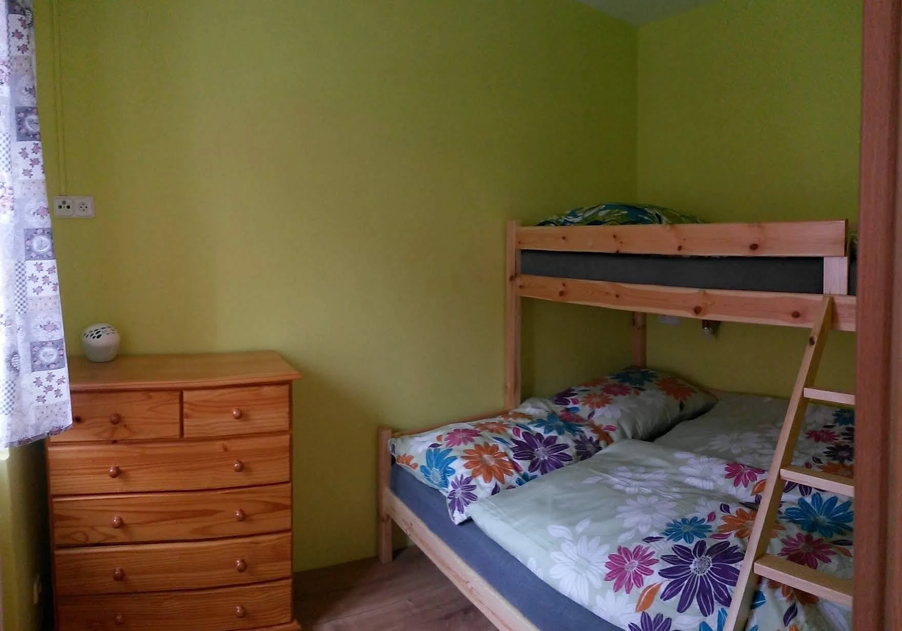 - Menší ložnice: 3 lůžka, z toho jedna patrová postel.