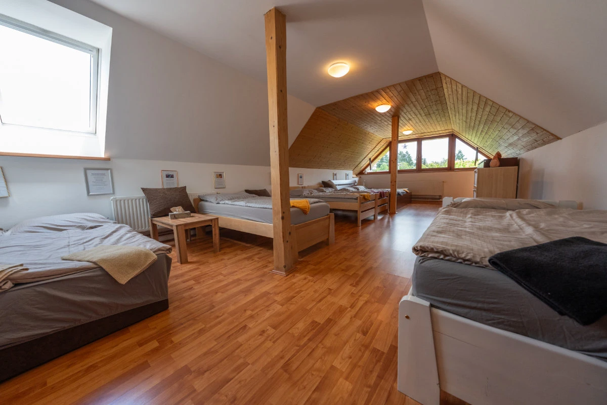 - Ložnice 2: manželská postel, 4 samostatné postele, rozkládací pohovka, komody (pro až 8 osob)