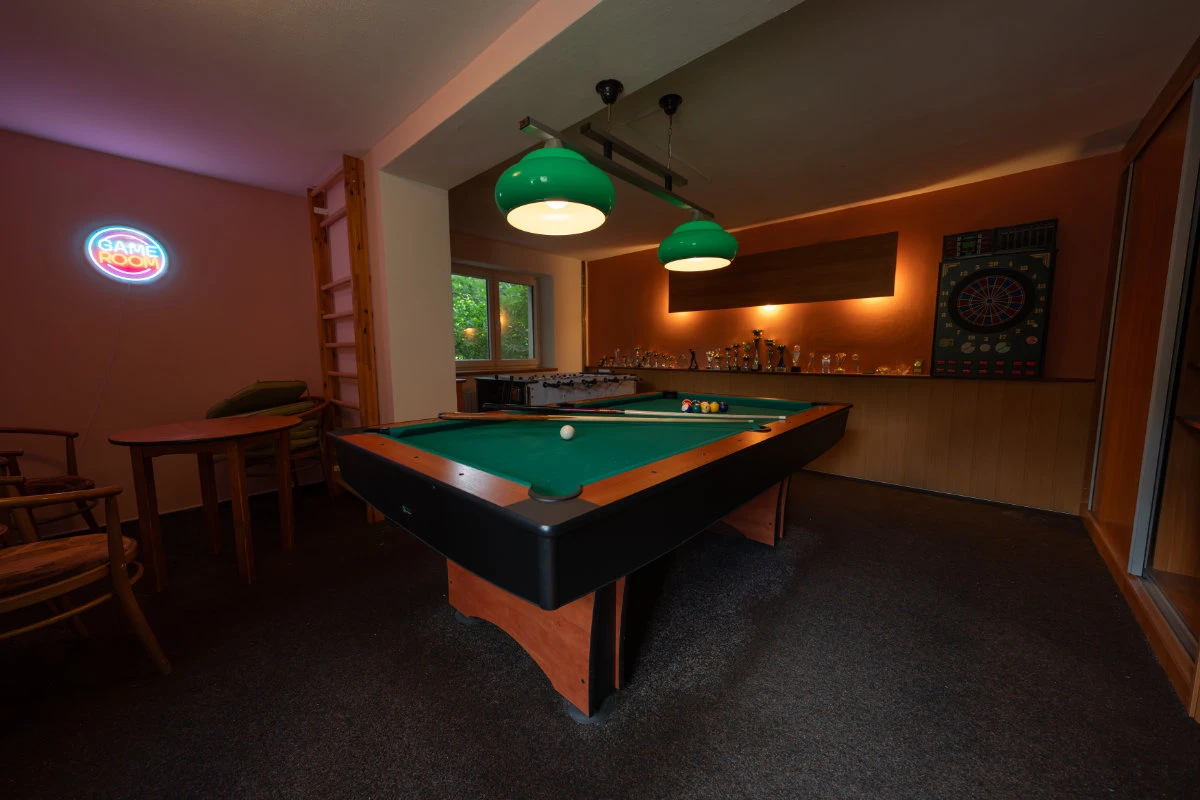 - Herna: kulečník, šipky, stolní fotbálek, stolní tenis