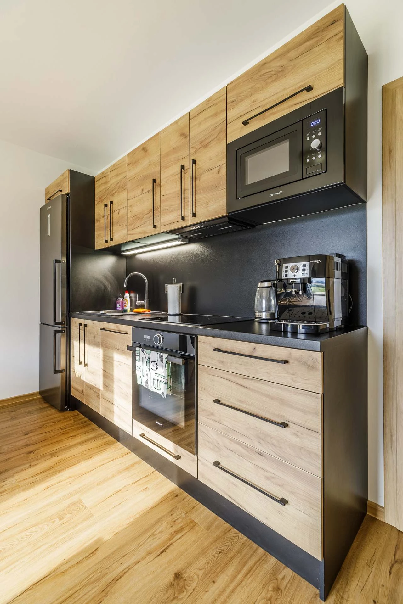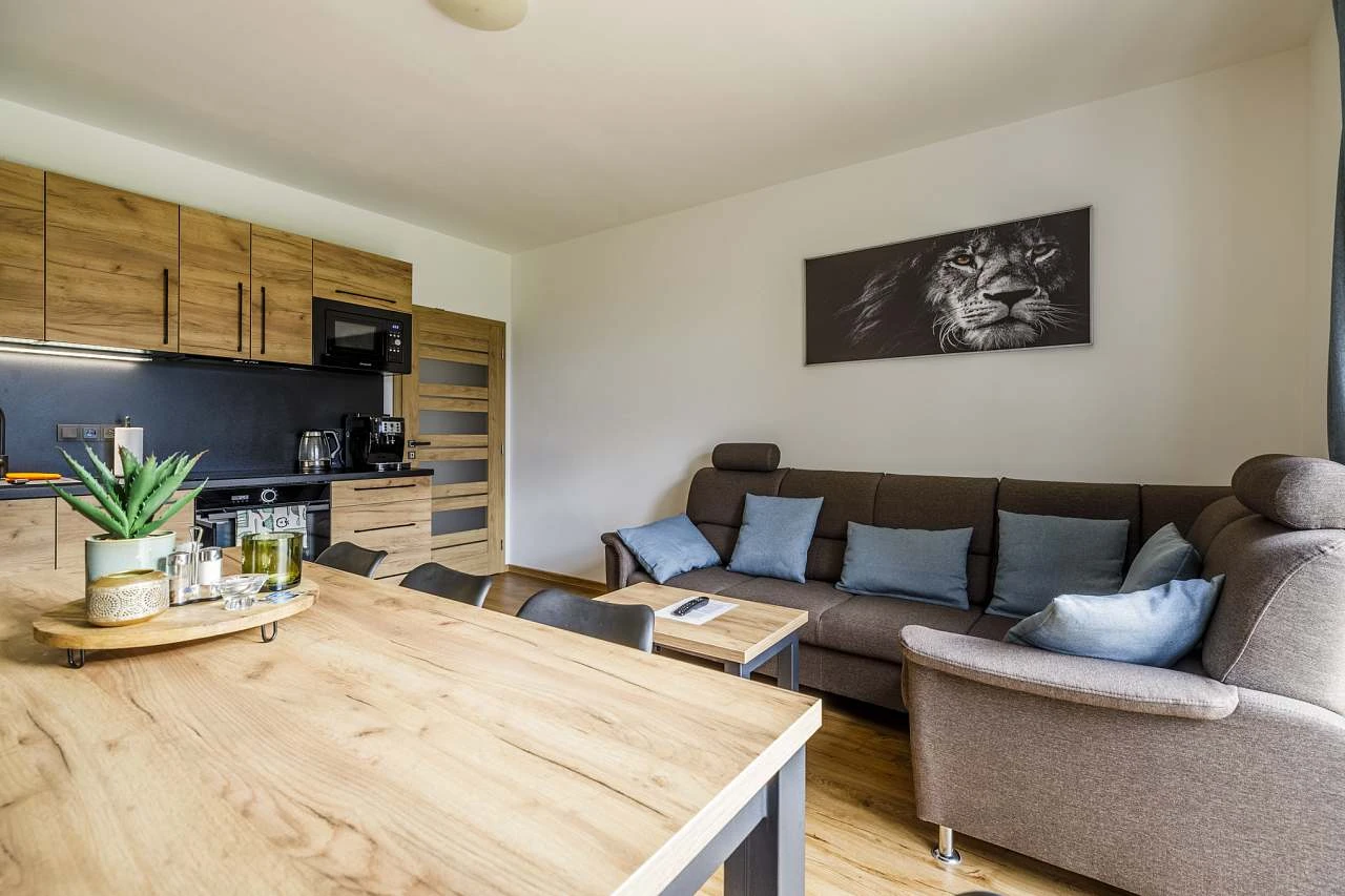 K dispozici je plně vybavená kuchyně s rychlovarnou konvicí, mikrovlnkou, lednicí s mrazákem, myčkou nádobí a kávovarem na zrnkovou kávu. Součástí vybavení je také veškeré kuchyňské nádobí, TV, internet, lůžkoviny, ručníky a osušky. Parkování je možné přímo u apartmánu. V blízkosti se nachází restaurace. Apartmán má společnou lyžárnu s uzamykatelnou a vyhřívanou skříňkou.