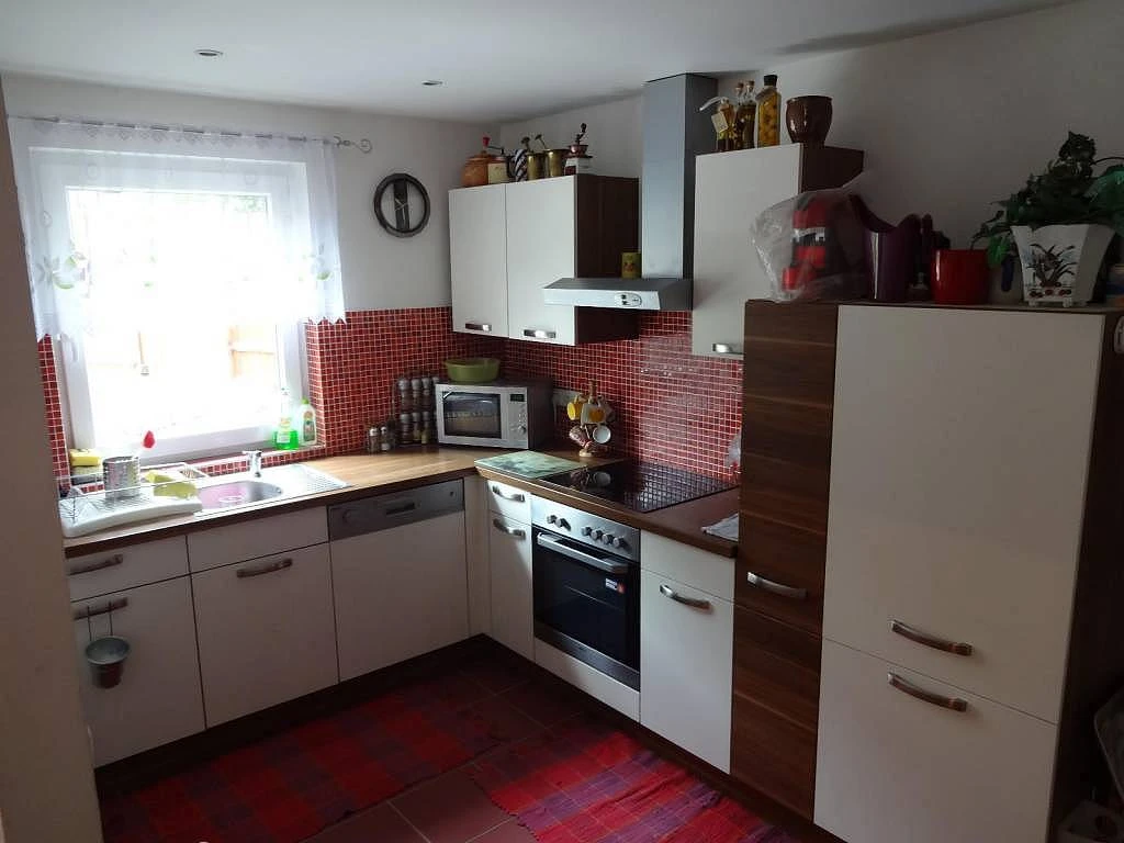 Kuchyň je plně vybavena elektrickou troubou, keramickou varnou deskou, mikrovlnnou troubou, rychlovarnou konvicí, ledničkou, mrazničkou a myčkou nádobí.