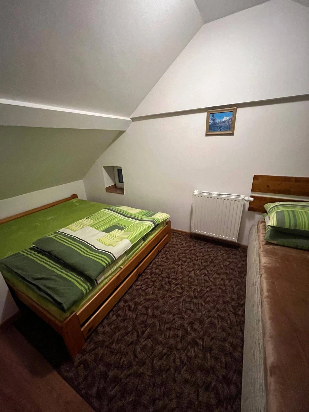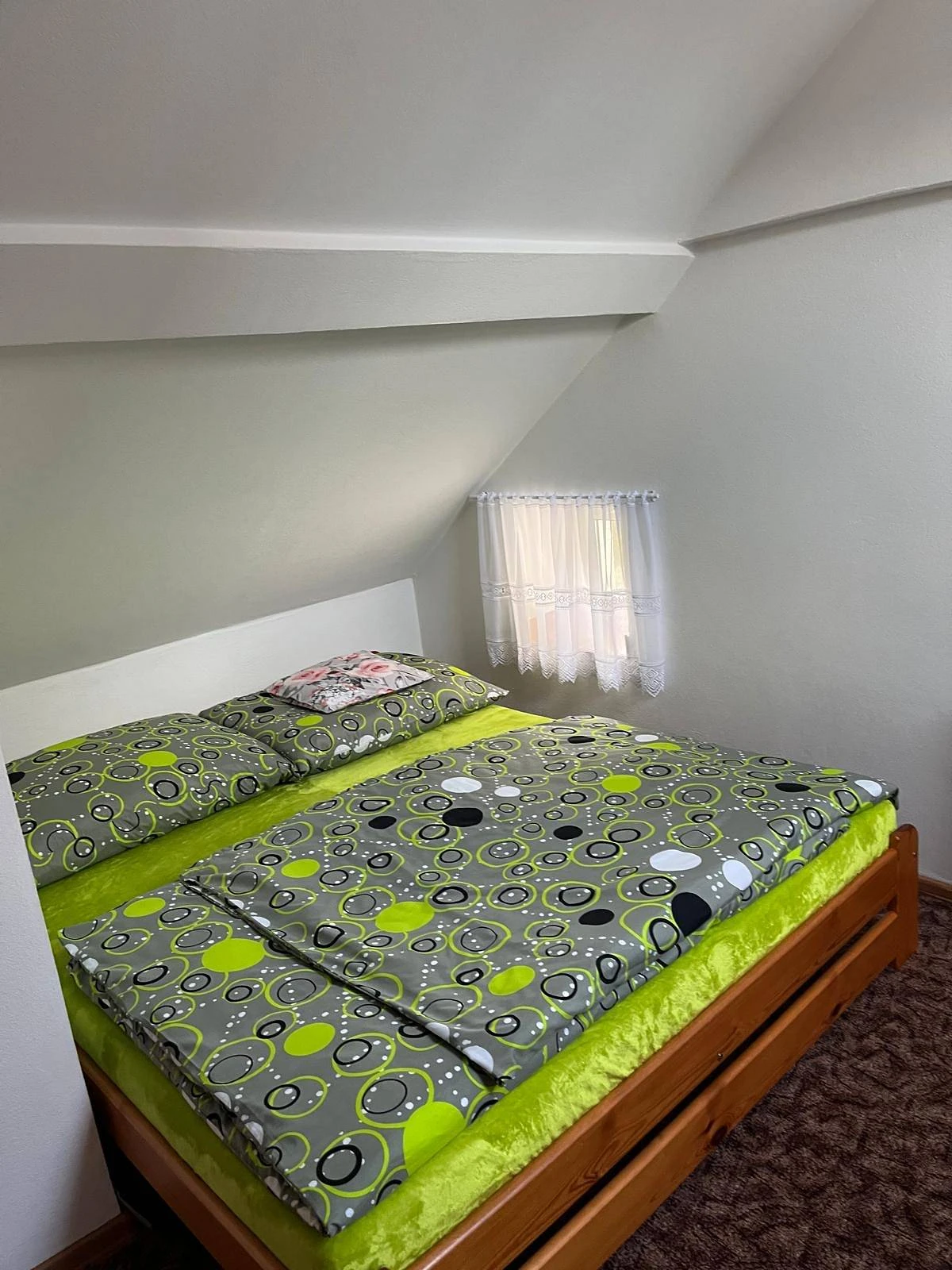 Apartmán poskytuje ubytování pro 5 osob ve dvou pokojích. K dispozici je jeden dvoulůžkový a jeden třílůžkový pokoj, oba s plně vybaveným kuchyňským koutem a koupelnou. Sociální zařízení zahrnuje WC, sprchový kout a umyvadlo. Hosté mohou využít parkování přímo u objektu, což usnadňuje dopravu. Po předchozí domluvě je také možnost stravování.
