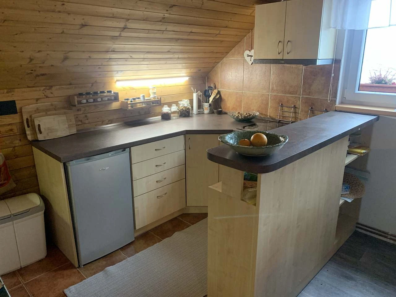 V apartmánu je plně vybavený kuchyňský kout s myčkou, troubou a sklokeramickou deskou. Obývací pokoj je vybaven pohodlnou sedačkou a televizí. K dispozici je WiFi připojení k internetu. Součástí je koupelna se sprchovým koutem a WC, včetně ručníků, vysoušeče vlasů a toaletních potřeb. Ložní prádlo je zahrnuto v ceně.