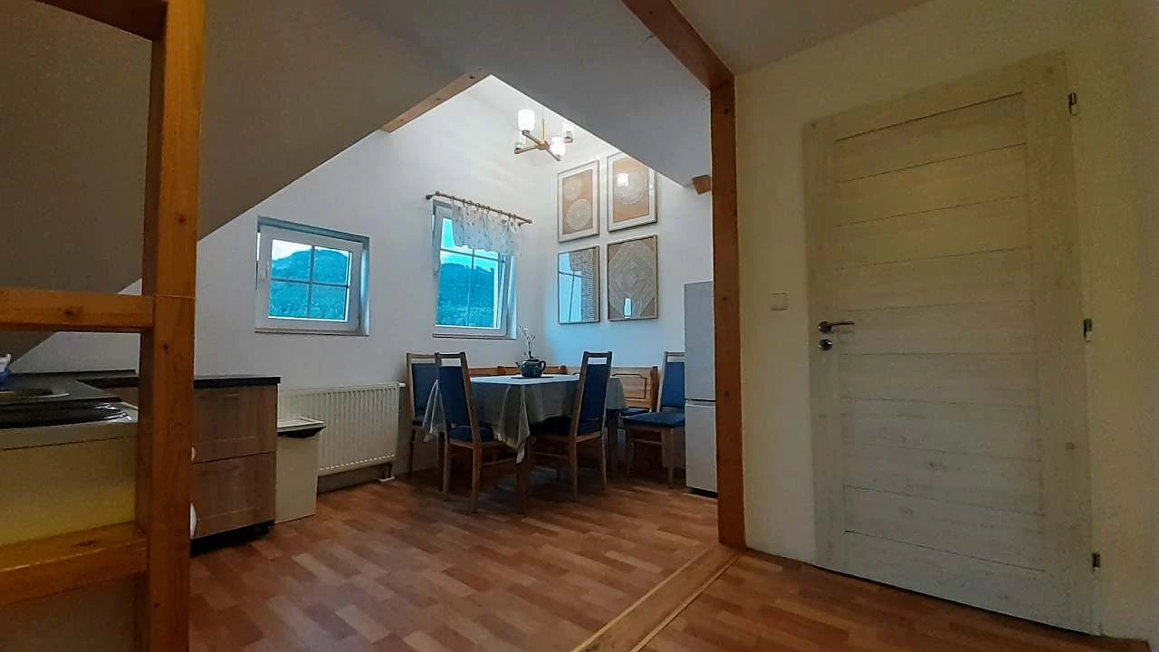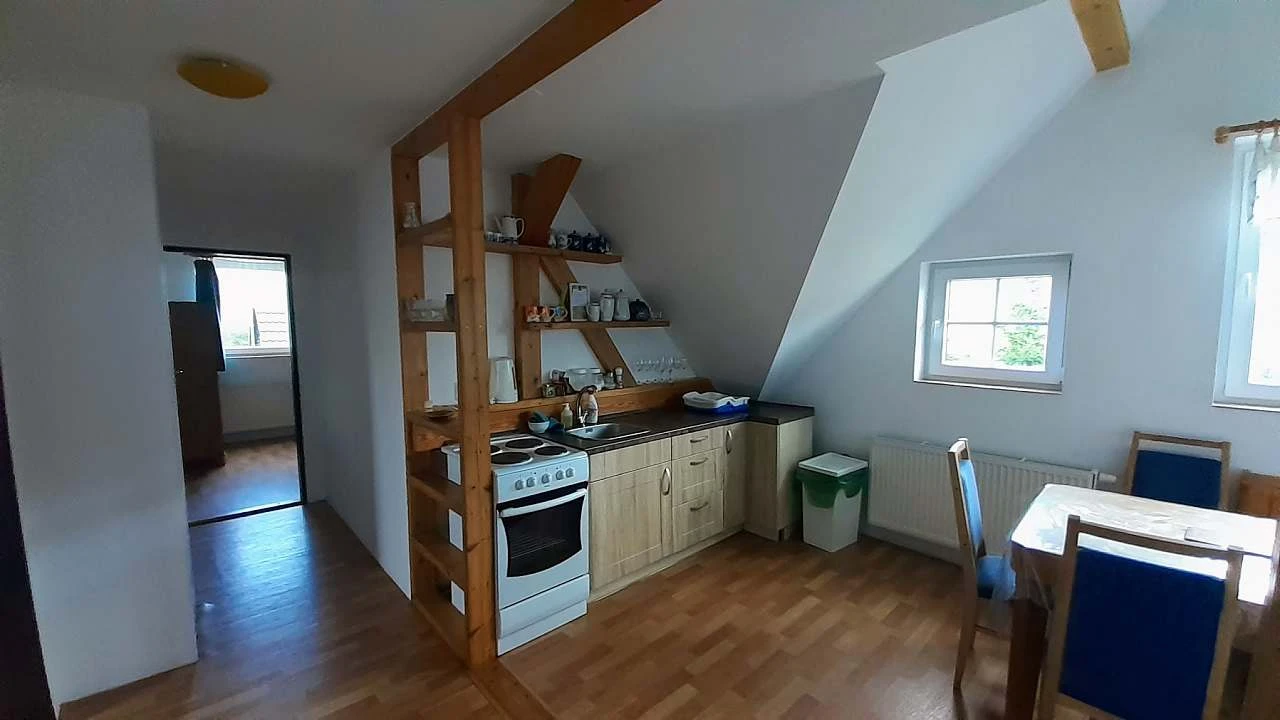 V objektu je společenská místnost s kuchyňským koutem a posezení pro 7 lidí.