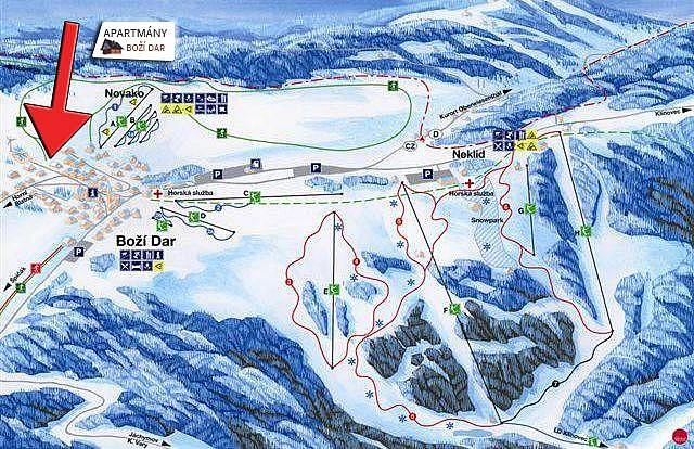 Největší lyžařské středisko české strany Krušných hor nabízí 9 sjezdovek různých obtížností, snowpark a dětský skipark.
