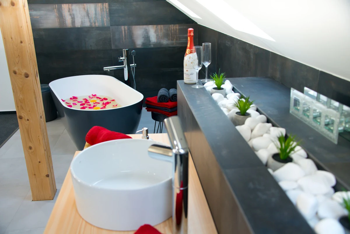 Všechny pokoje a apartmány mají soukromou koupelnu se sprchovým koutem a toaletou, jsou vybaveny televizí, ledničkou a ve všech prostorách je k dispozici WiFi připojení zdarma. Hosté mohou využít také společnou kuchyňku, která je plně vybavená – nechybí zde keramická varná deska, mikrovlnná trouba, rychlovarná konvice, kávovar, toustovač a myčka nádobí. Pro rodiny s dětmi je připravena dětská postýlka a venkovní pískoviště. K relaxaci vybízí terasové posezení, kde si můžete užít klidné chvíle.