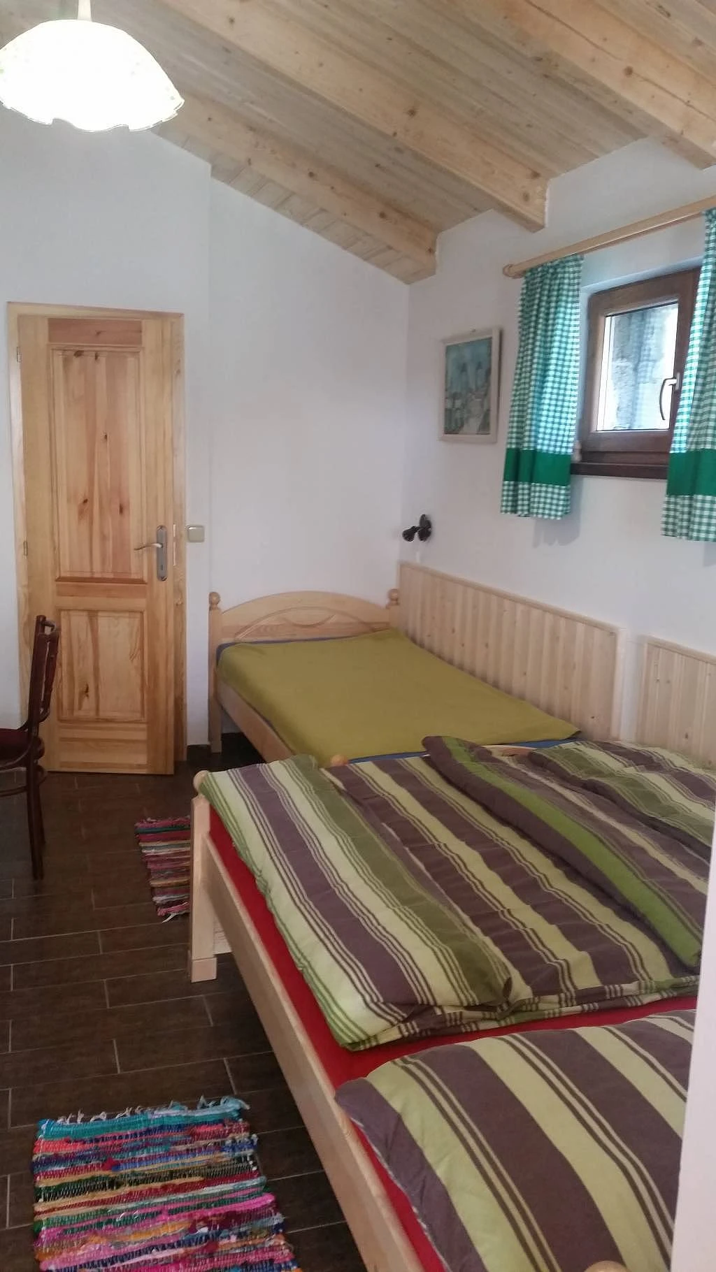 Komfortní roubená chatka s patrovými postelemi a manželskou postelí, plně vybavená kuchyňka, koupelna se sprchovým koutem, jídelní kout a TV. Ideální pro rodiny s dětmi.