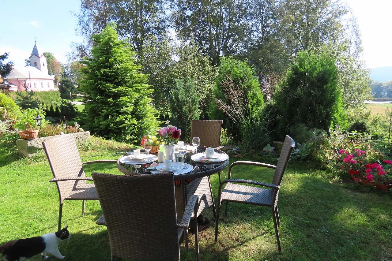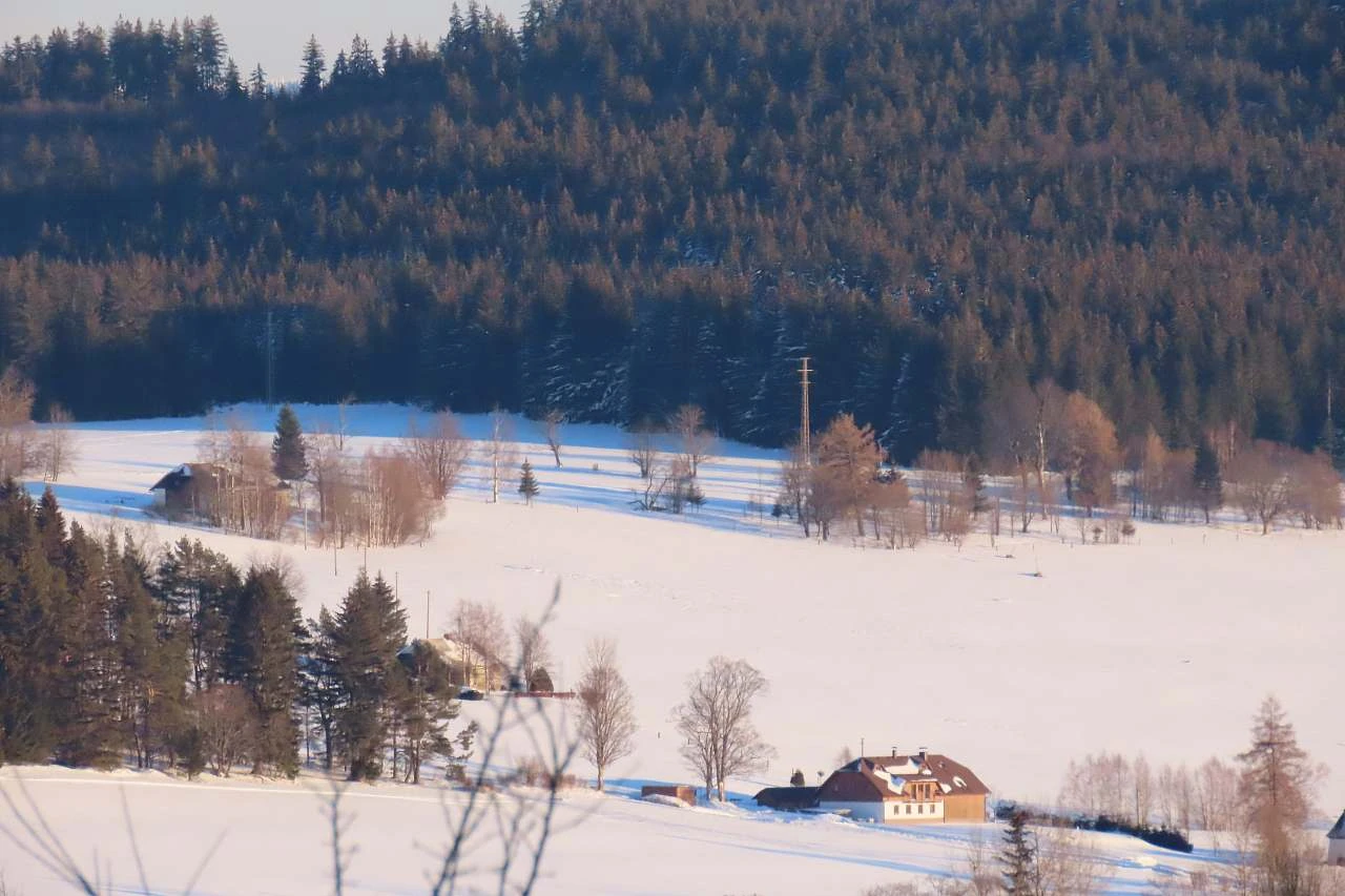 - Malebná šumavská obec s pastvinami a výhledy na Šumavu.
