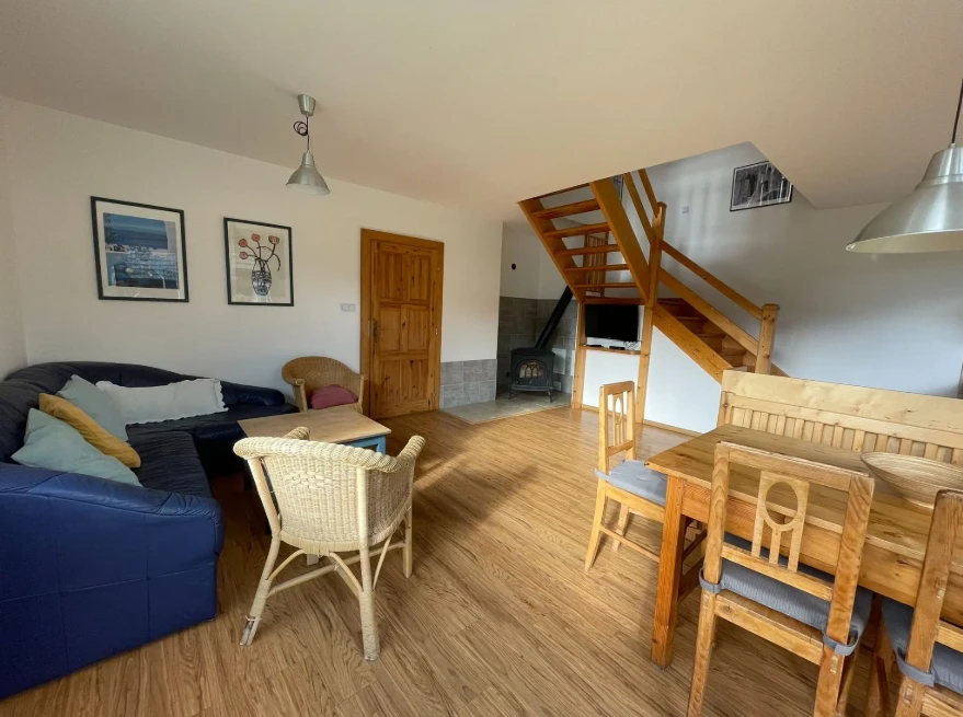 V každém apartmánu je samostatný vchod, což zajišťuje soukromí hostů. V přízemí každého apartmánu se nachází obývací prostor s pohovkou, televizí a krbovými kamny, která vytvářejí příjemnou atmosféru.