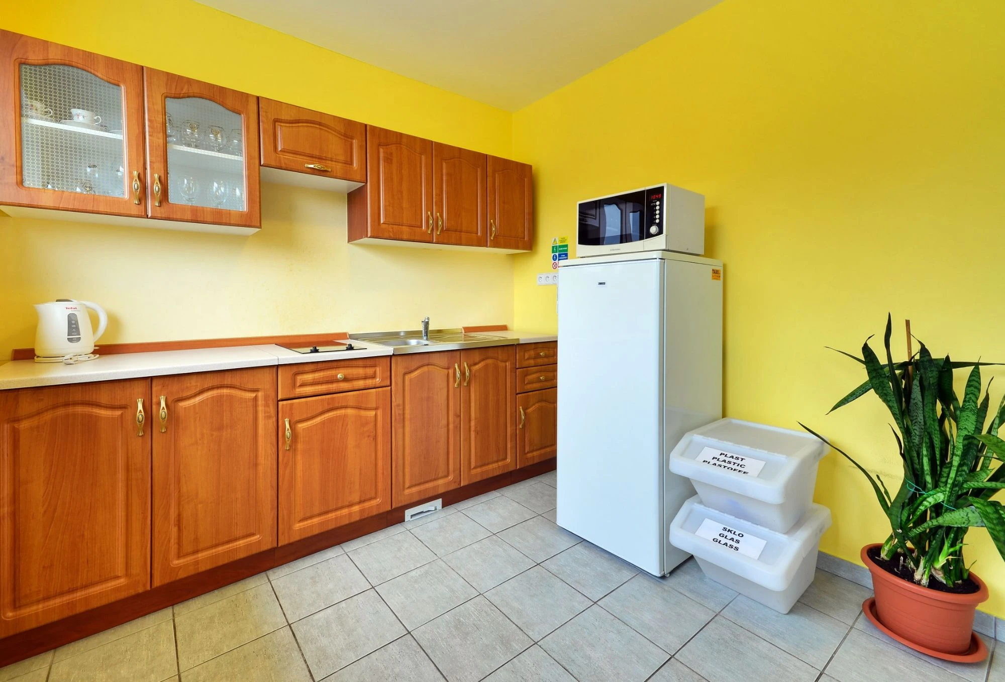 - Kuchyně: Plně vybavené kuchyně s lednicí, sporákem, troubou, mikrovlnnou troubou, rychlovarnou konvicí a nádobím.