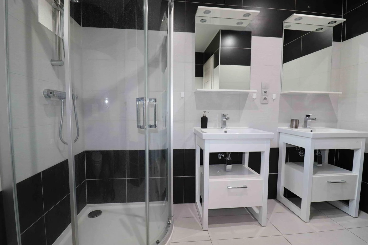 - Koupelny: Moderní koupelny se sprchovým koutem, toaletou a fénem.