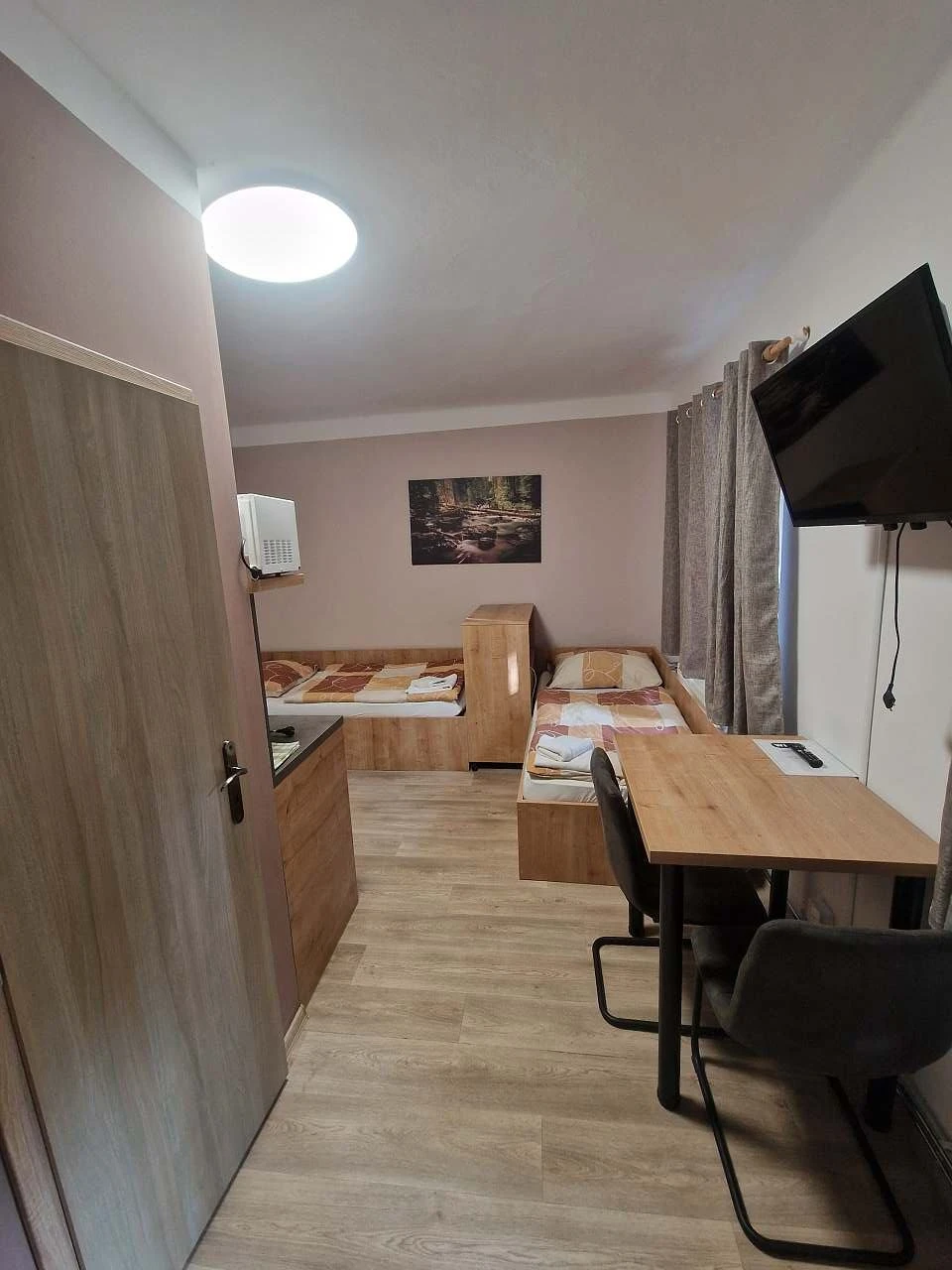Každý apartmán je vybaven vlastní kuchyňkou se všemi potřebnými spotřebiči, komfortním sociálním zařízením a kvalitními lůžky. Hosté mají k dispozici bezplatné WiFi připojení, které zajistí pohodlí i při delším pobytu. Ve společném venkovním prostoru si můžete vychutnat posezení u grilu, zatímco děti se zabaví na herní ploše v zahradě.