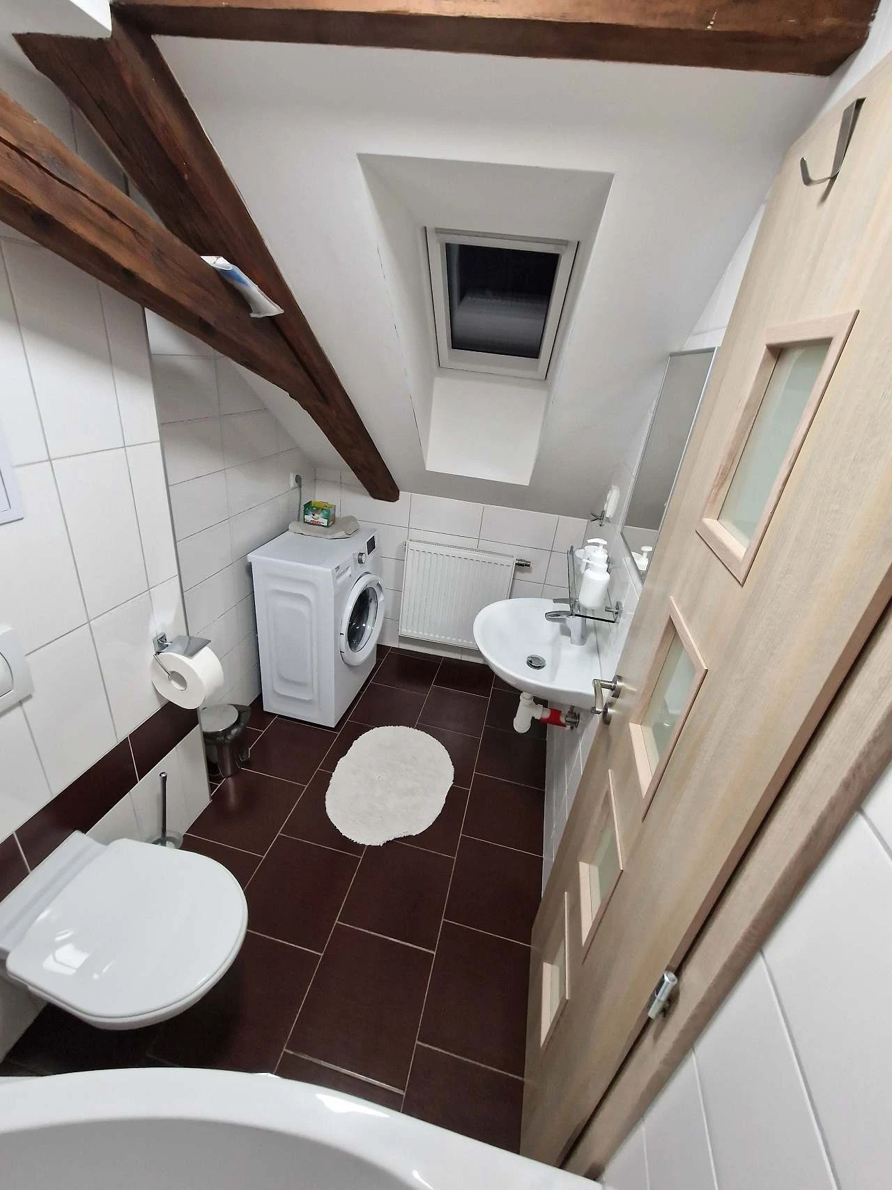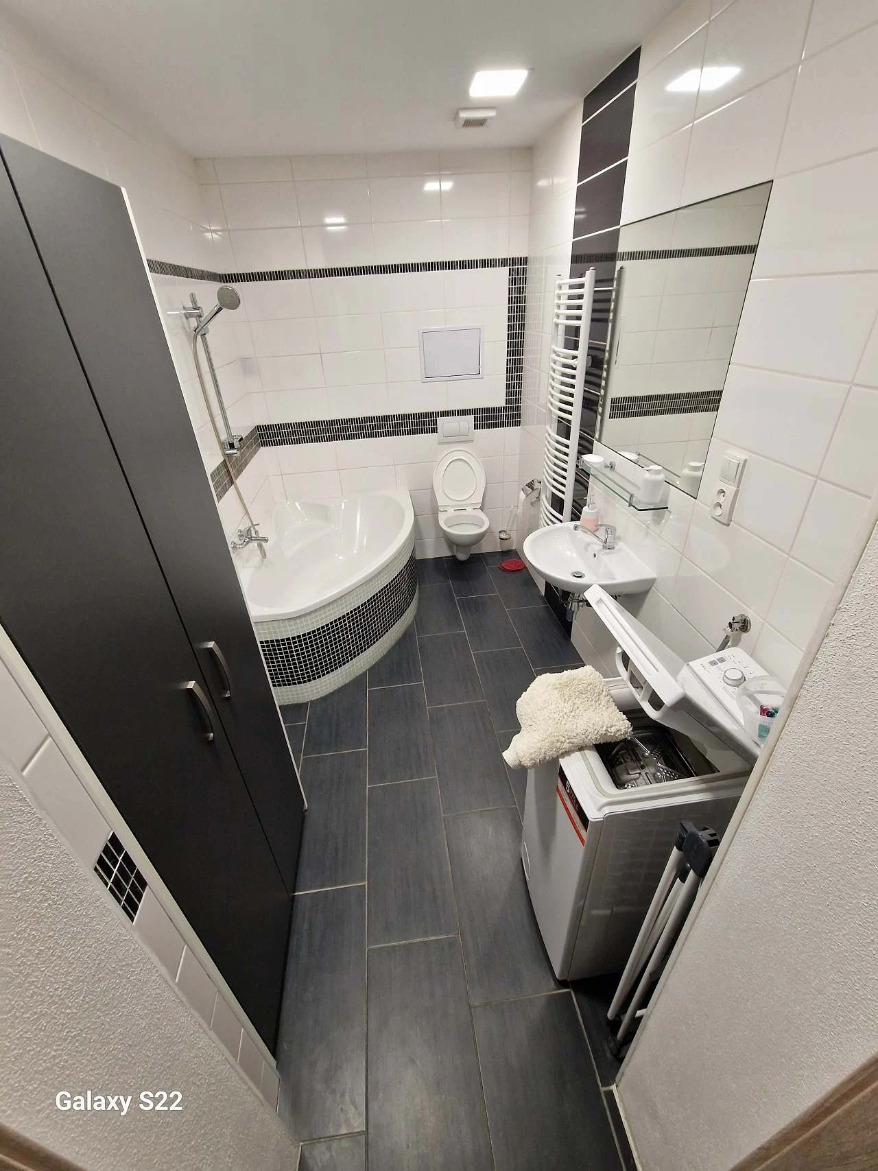 Každý apartmán disponuje samostatnou koupelnou s vanou nebo sprchovým koutem, umyvadlem a toaletou. Pro hosty jsou připraveny ručníky a základní hygienické potřeby.