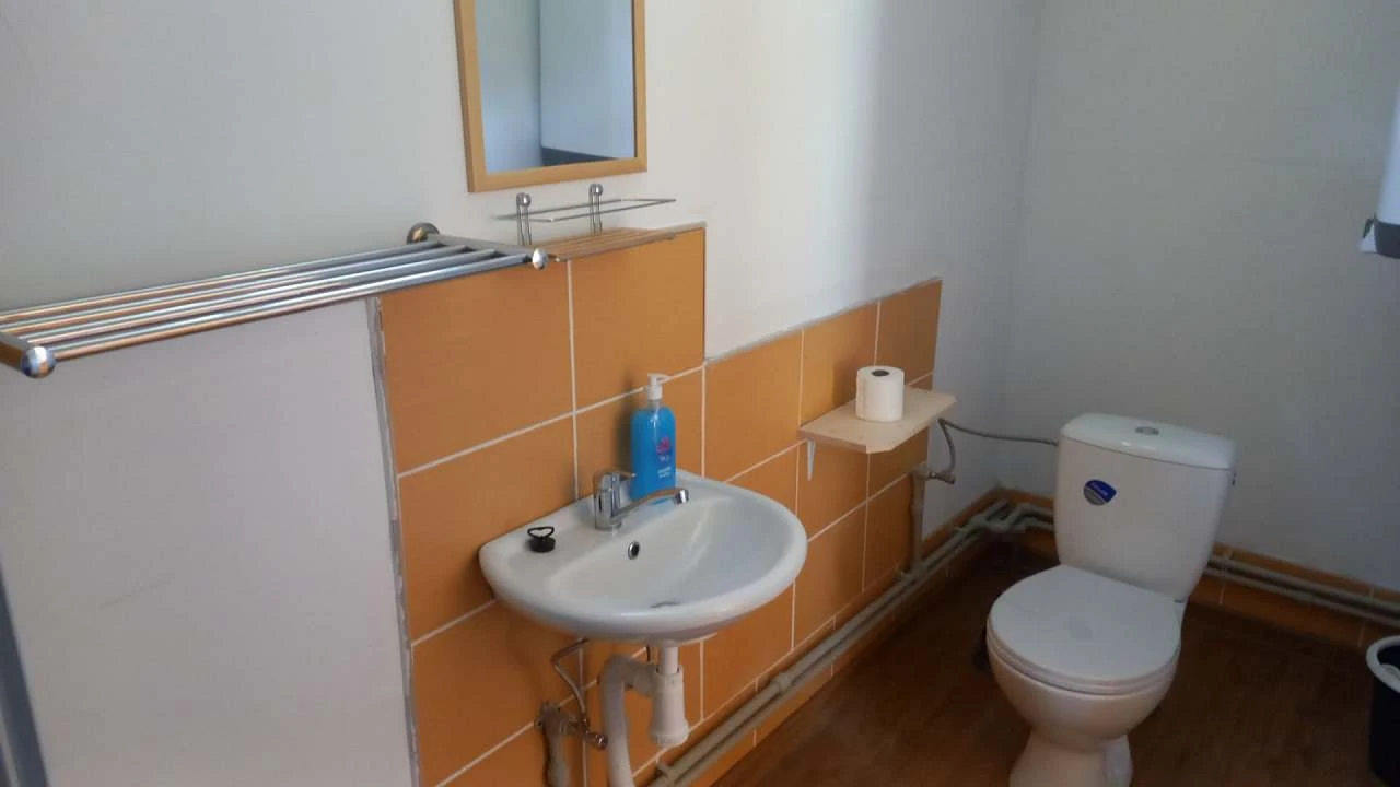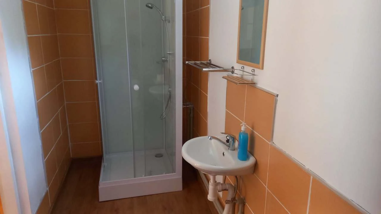 Každý apartmán má vlastní koupelnu se sprchovým boxem, umyvadlem a WC.
