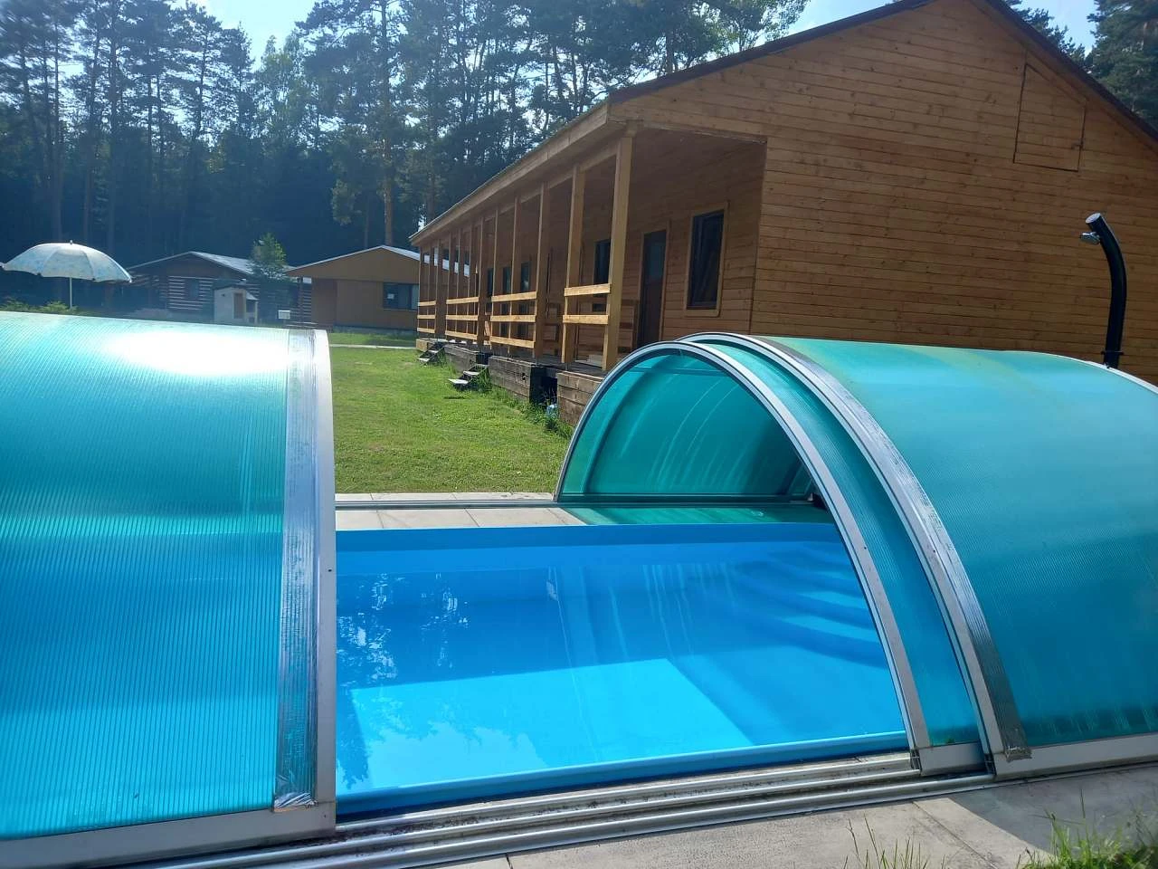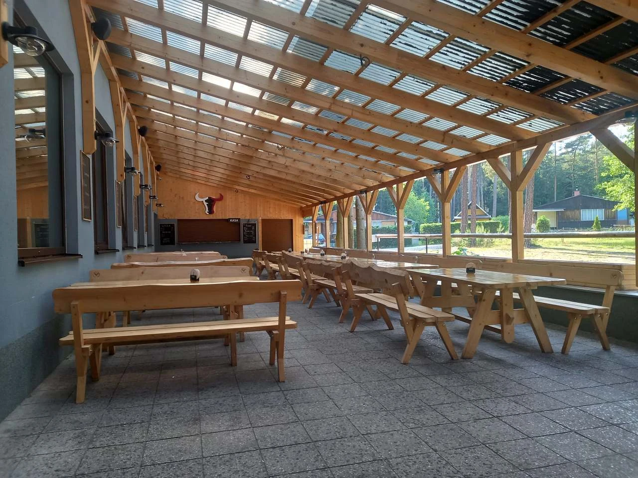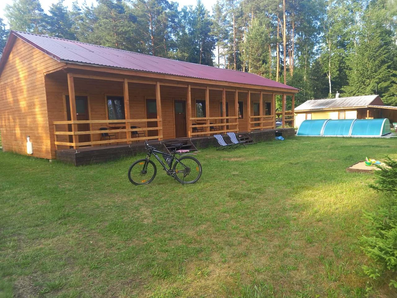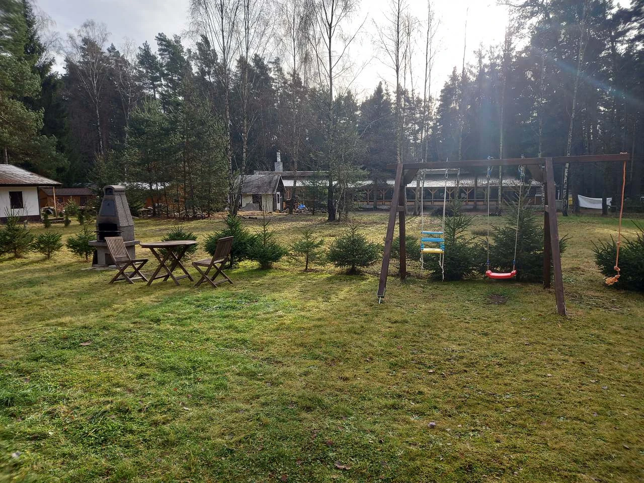 Venkovní prostory srubu jsou stejně lákavé jako jeho interiér. Hosté mohou využít zahradu pro relaxaci či grilování na terase, zatímco děti si užijí zábavu na dětském hřišti. Okolní příroda nabízí nespočet možností pro aktivní trávení volného času, ať už se jedná o pěší túry, cykloturistiku nebo vodní sporty na nedalekém jezeře.