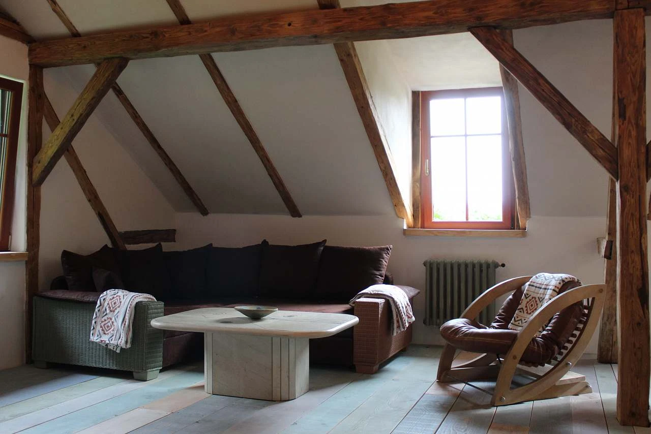 - Obývací prostor: jednoprostorový apartmán v podkroví s celodenním slunečním svitem.