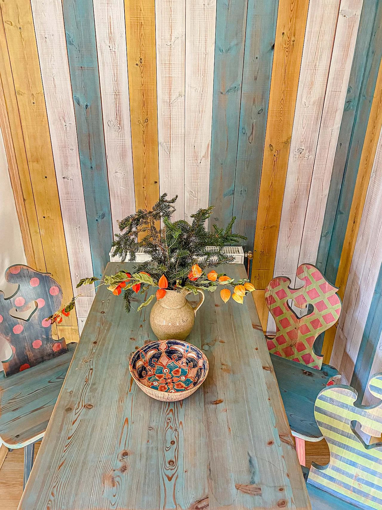 Apartmán Pastelka o velikosti 1+kk (70 m²) se nachází v 1. nadzemním podlaží Chalupy pod lesem na druhé straně Trnova. Tento apartmán je ideální pro čtyřčlennou rodinu nebo skupinu přátel.