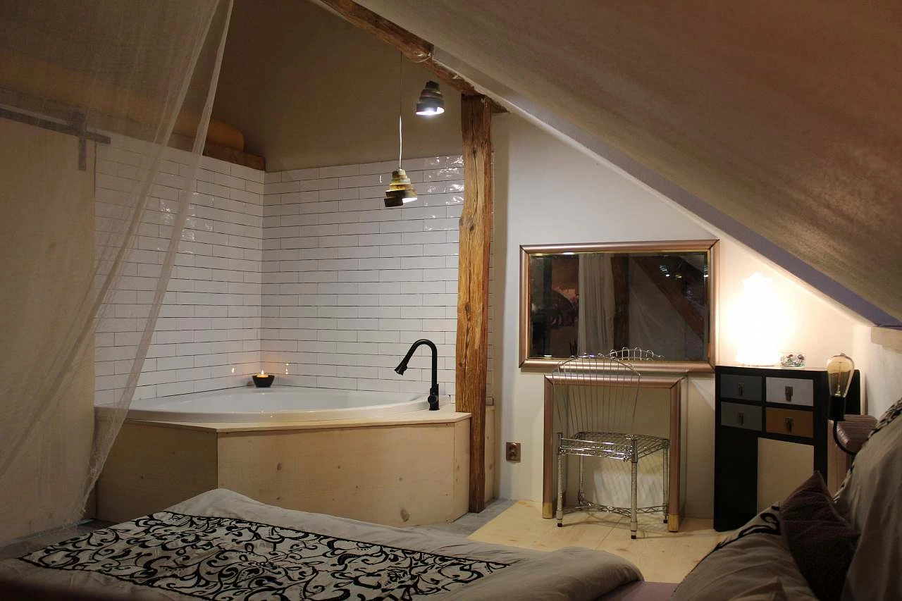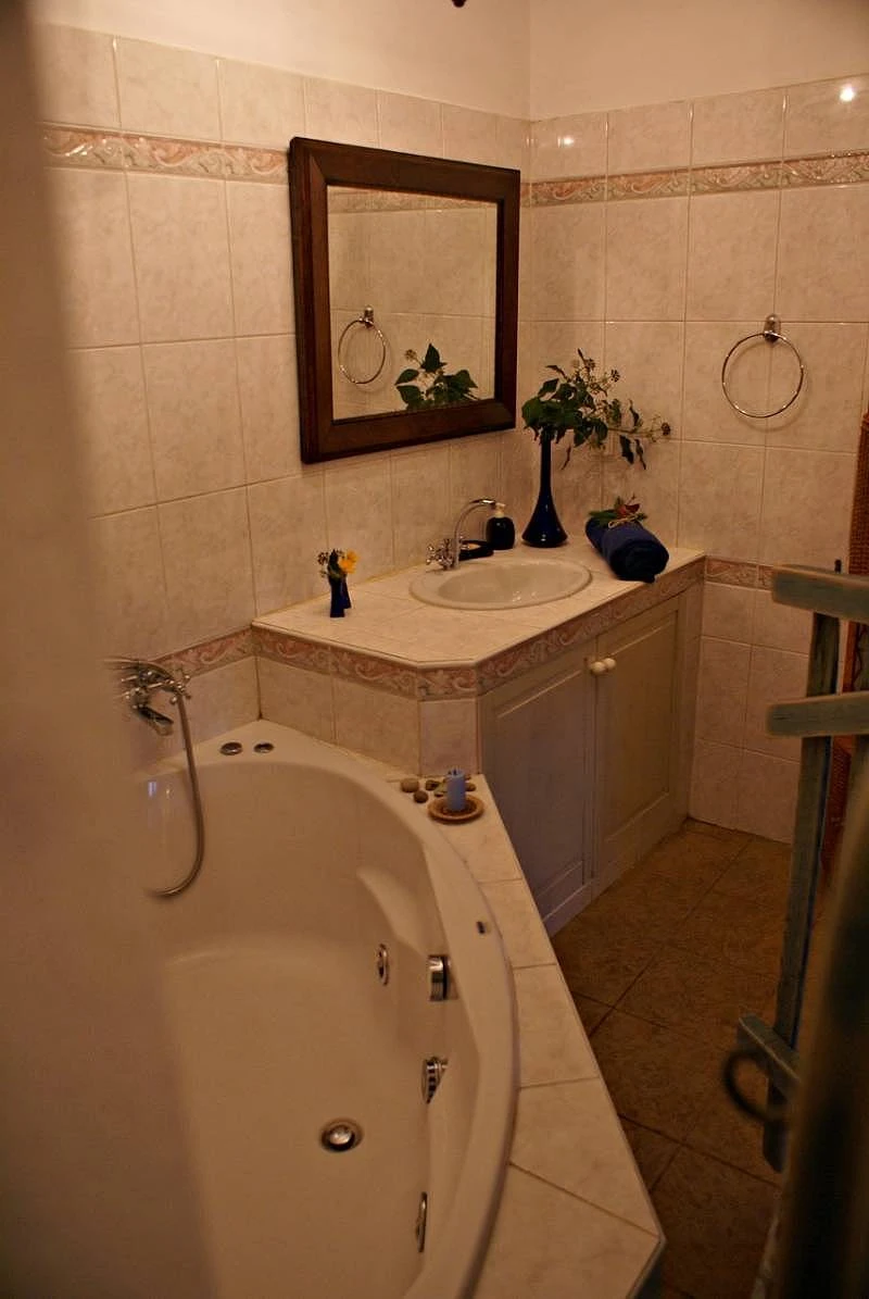 - Koupelna: vlastní koupelna s rohovou vířivou vanou.