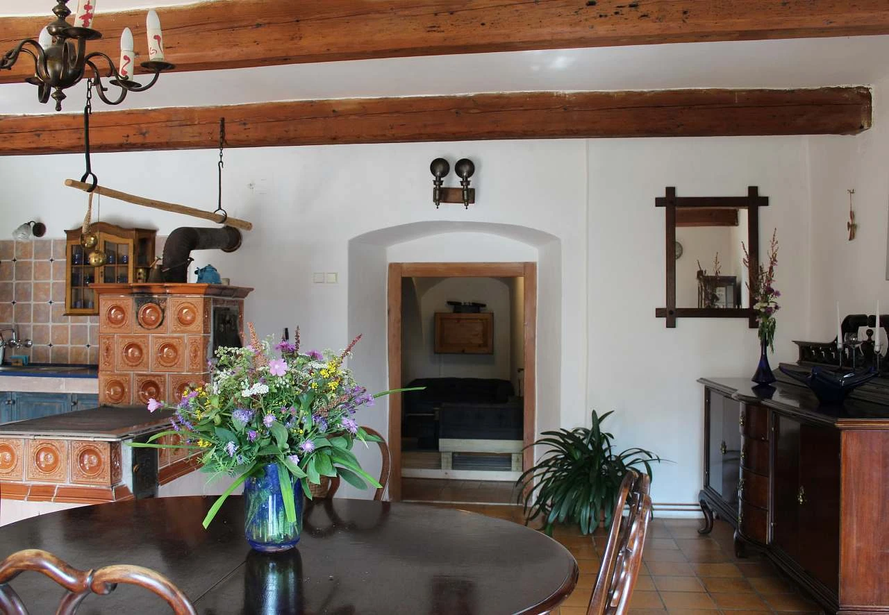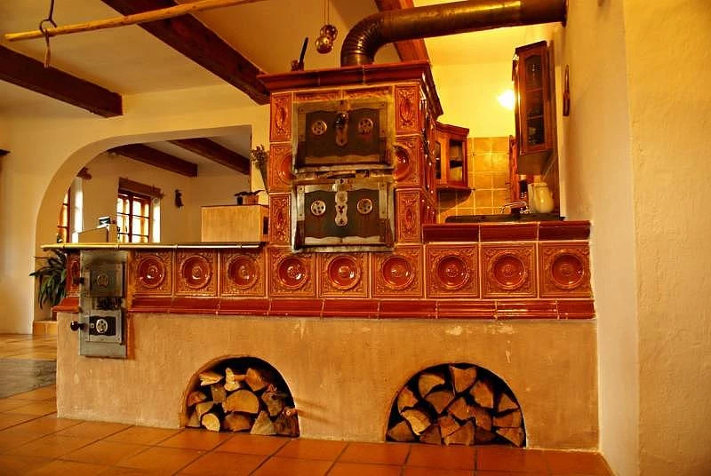 - Vytápění: Krbová kamna a sporák s troubou; v jedné ložnici krb.