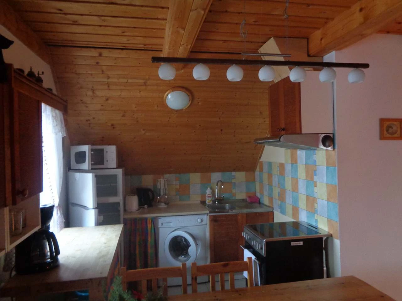 Apartmán je vybaven kuchyňskou linku, dále je zde čtyřplotýnková sklokeramická deska, digestoř, rychlovarná konvice, překapávač, mikrovnka, lednice, el. trouba, toustovač a pračka. K dispozici je také TV se satelitním příjmem a WI - FI. V létě možnost venkovního sezení k dispozici venkovní nábytek + gril a ohniště. Pro děti malé pískoviště.