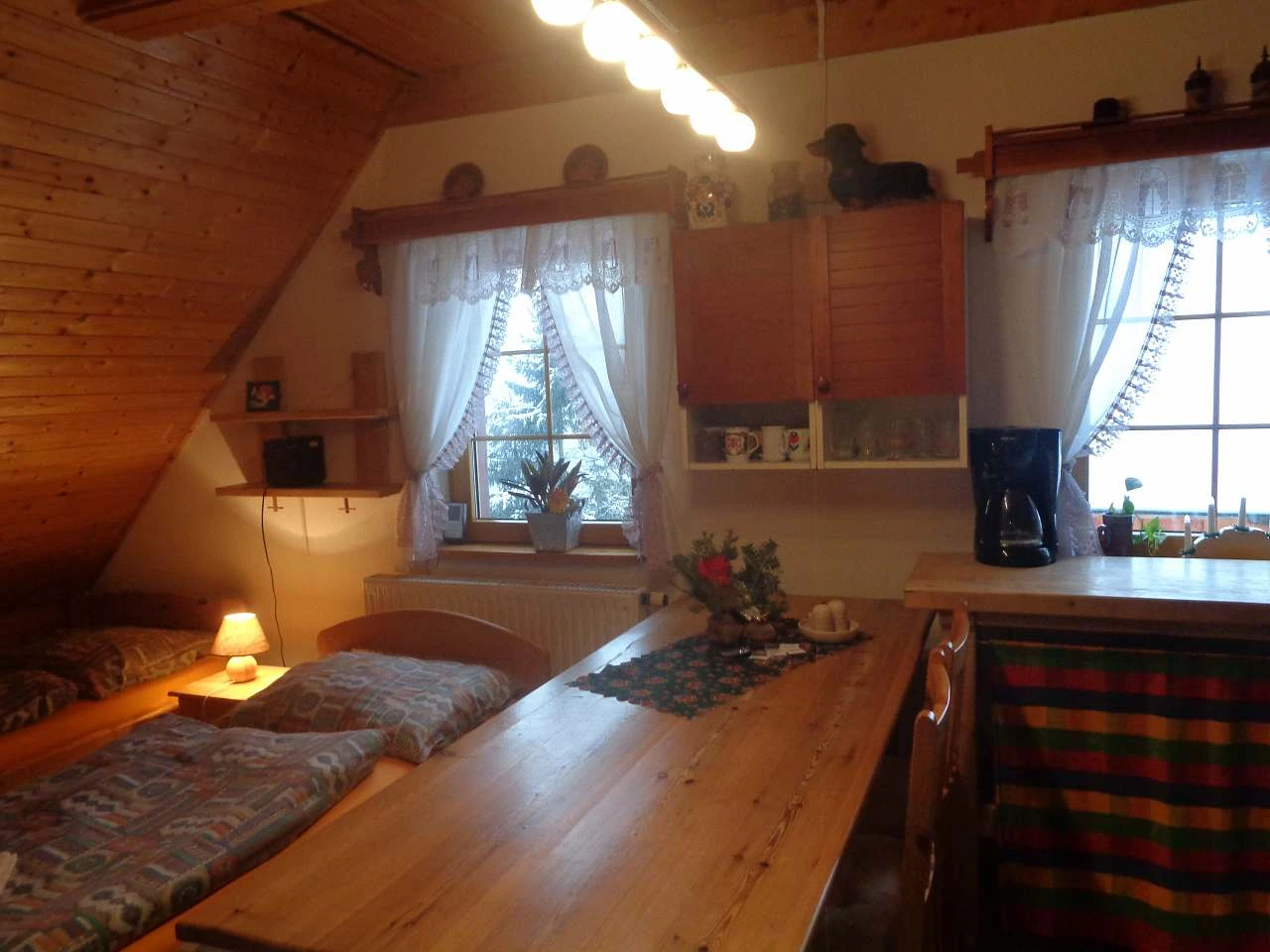 Vítejte v apartmánu U Červeného buku, který se nachází v podkroví útulné chalupy s vlastním samostatným vchodem. Tento apartmán je ideální pro jednotlivce, páry i menší rodiny, kteří hledají klidné místo k odpočinku v srdci přírody.