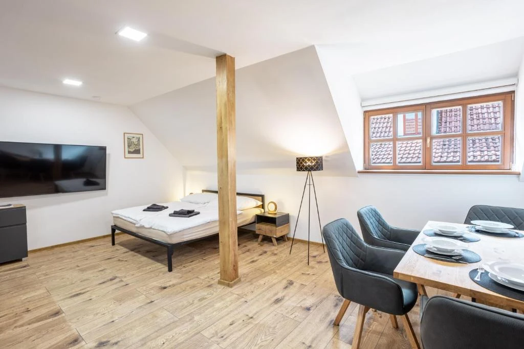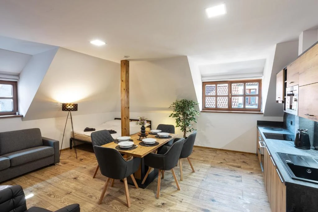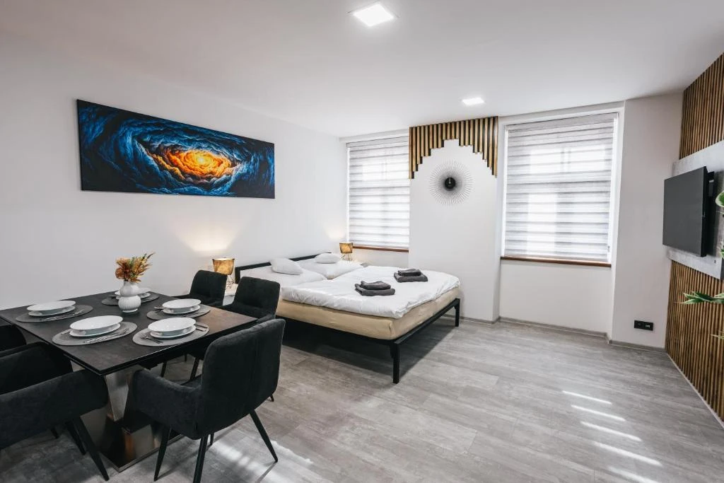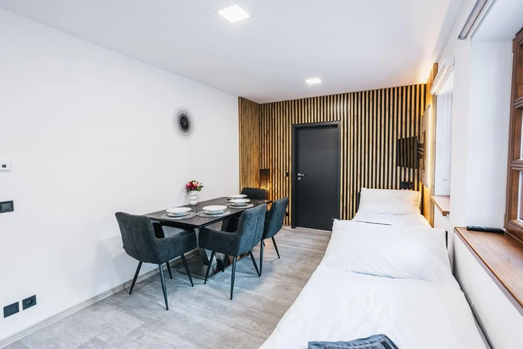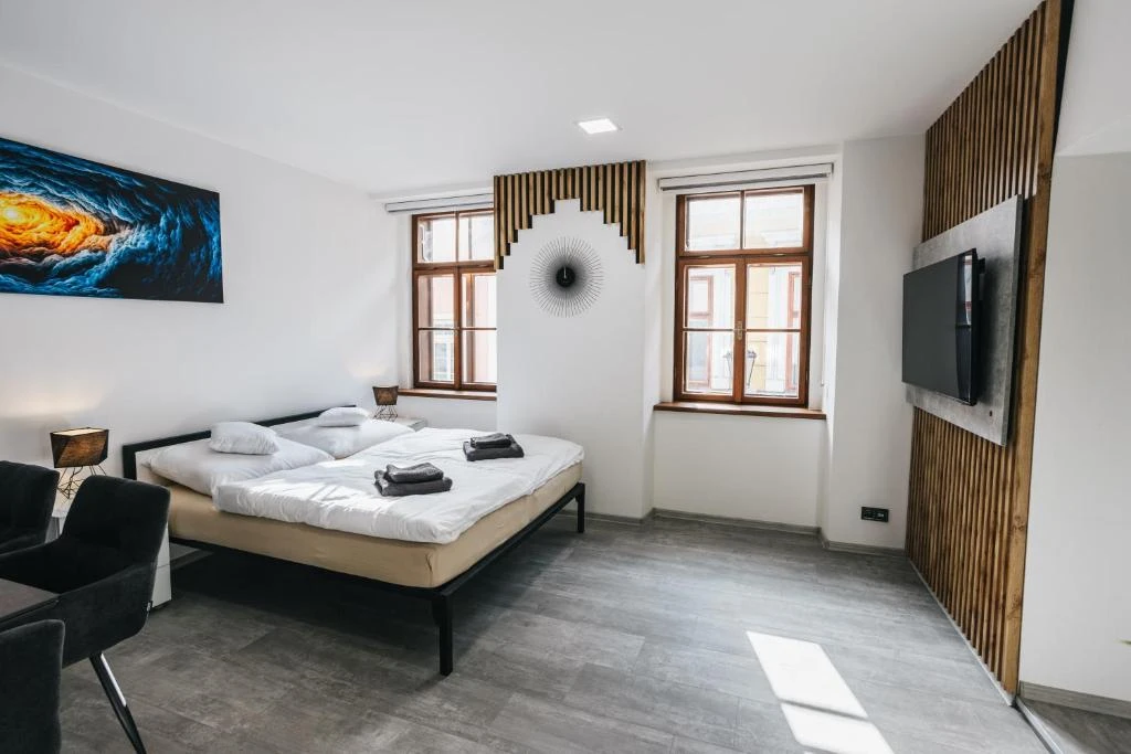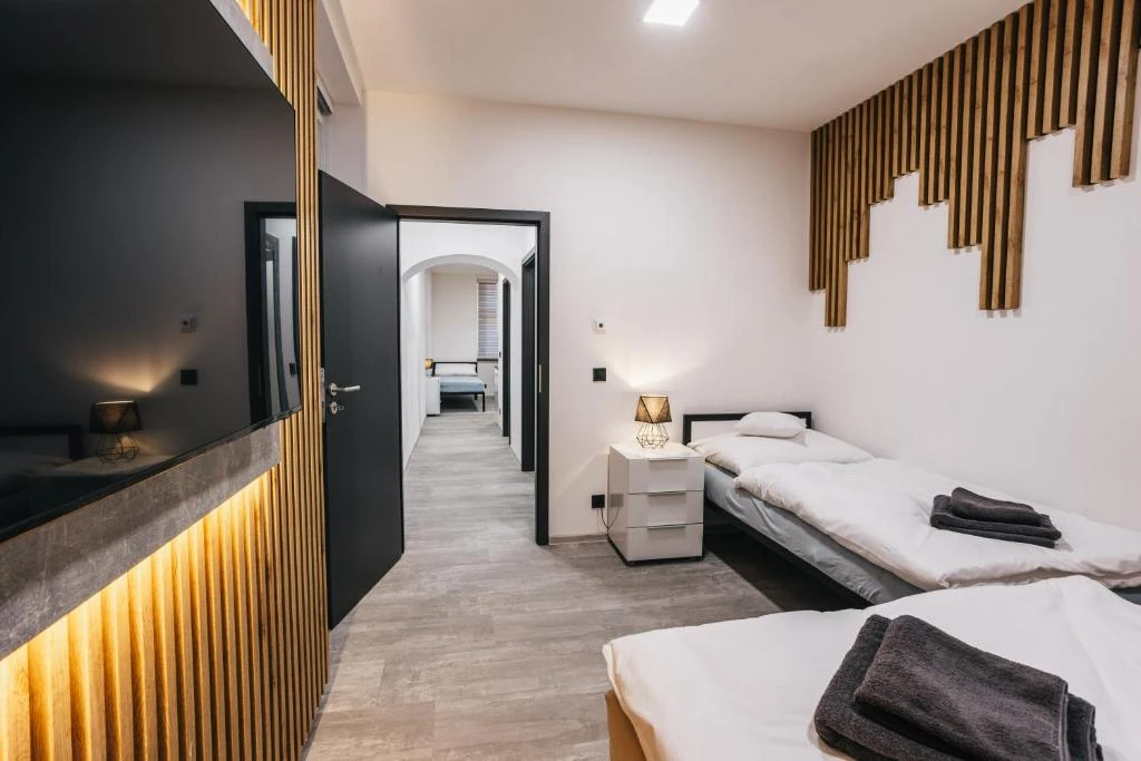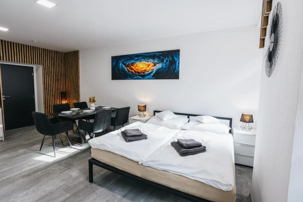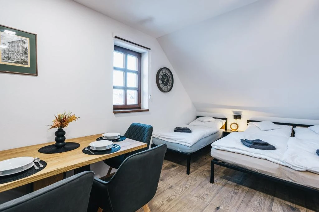 Apartmány U Doskočilů v Jindřichově Hradci nabízejí ubytování s širokým vybavením a praktickými službami. Hosté mohou využít soukromé parkoviště za poplatek 8 € na den, přičemž je nutná rezervace. Parkoviště zahrnuje také dobíjecí stanice pro elektromobily. Bezdrátové internetové připojení je k dispozici zdarma ve všech prostorách.