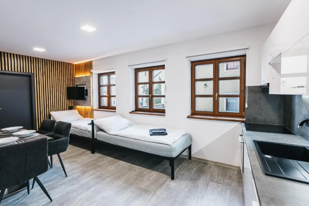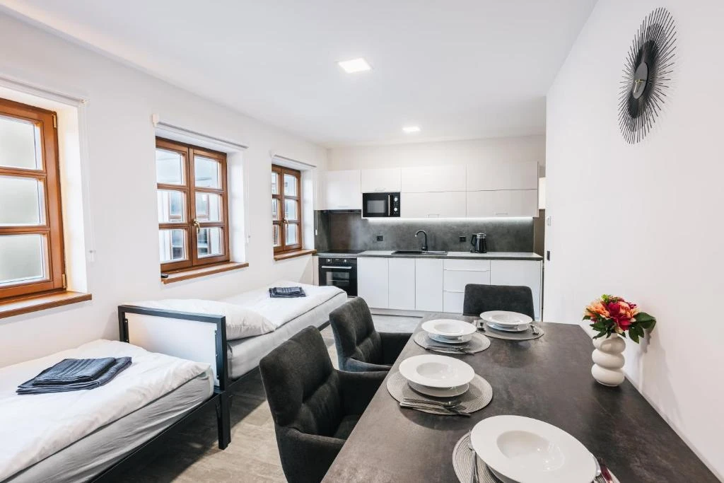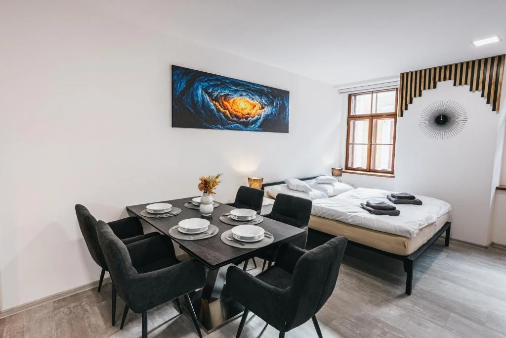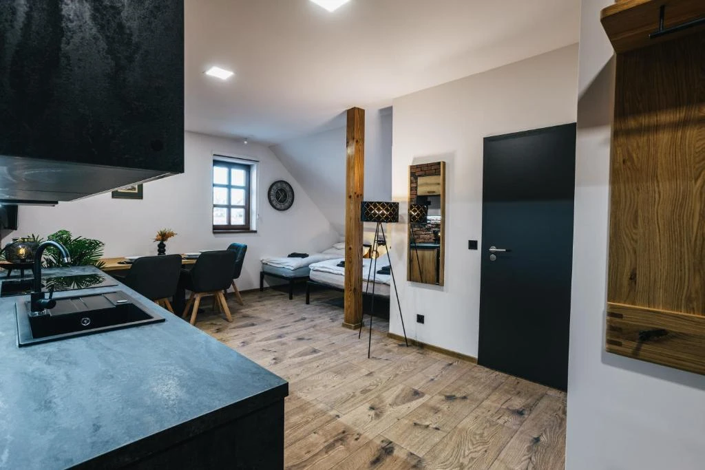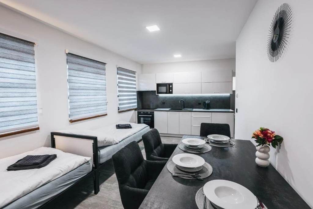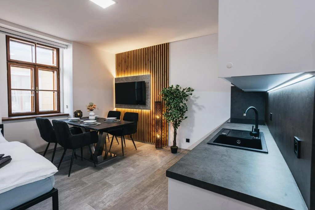 Apartmány U Doskočilů se nachází v Jindřichově Hradci a nabízejí praktické ubytování s bezplatným Wi-Fi připojením. Hosté mohou využít soukromé parkoviště za poplatek. Každý apartmán je vybaven TV s plochou obrazovkou, vlastní koupelnou a plně zařízenou kuchyní, která zahrnuje lednici, myčku nádobí, troubu, mikrovlnnou troubu a varnou konvici.
