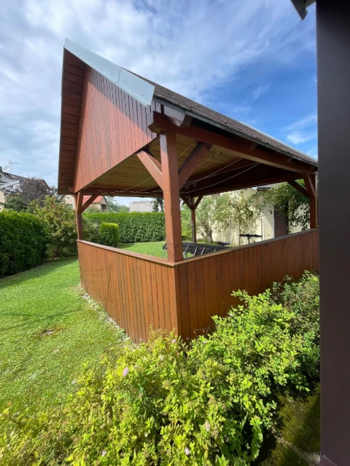 Venkovní prostory Vám nabídnou krásnou zahradu, altán s posezením a možnost grilování u ohniště. Cyklisté i lyžaři ocení úschovnu na kola nebo zimní vybavení. Parkování je pohodlně zajištěno přímo u objektu.