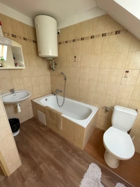 Pro 4-5 osob, dvě ložnice, koupelna s WC a vanou.