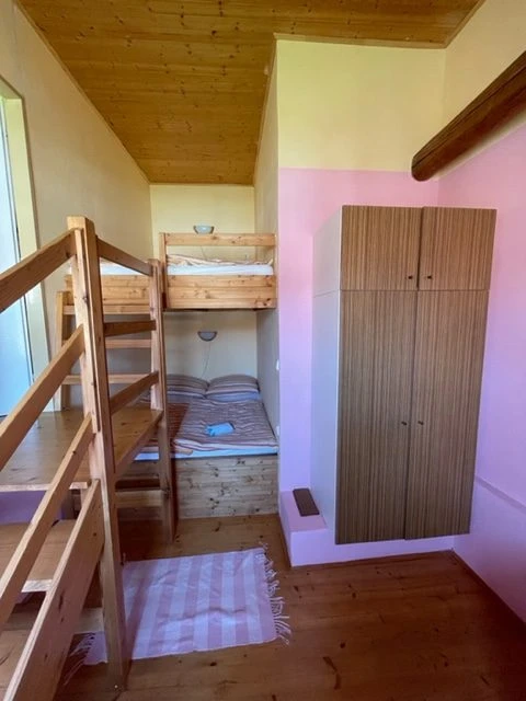 Pro 4-5 osob, dvě ložnice, koupelna s WC a vanou. 2 ložnice, 2+3 lůžka pro 4-5 osob Cena: 2 000 Kč / noc / apartmán 12 000 Kč / týden / apartmán
