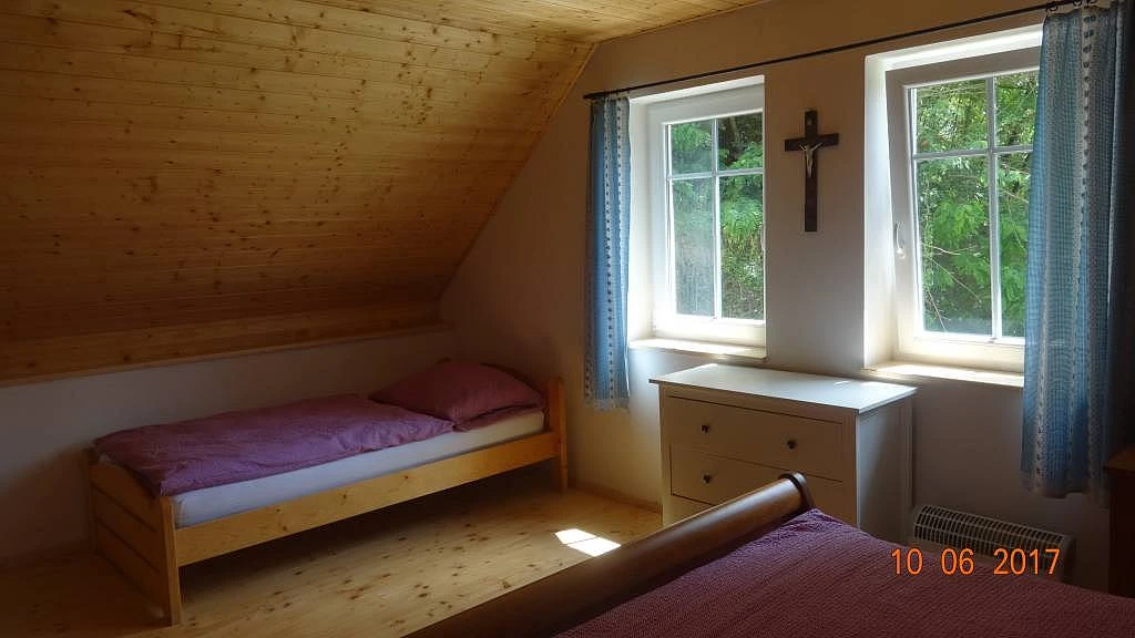 Chalupa k pronájmu poskytuje ubytování pro 2 až 11 osob ve 3 ložnicích.