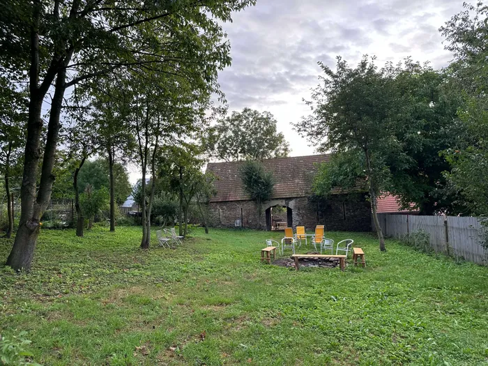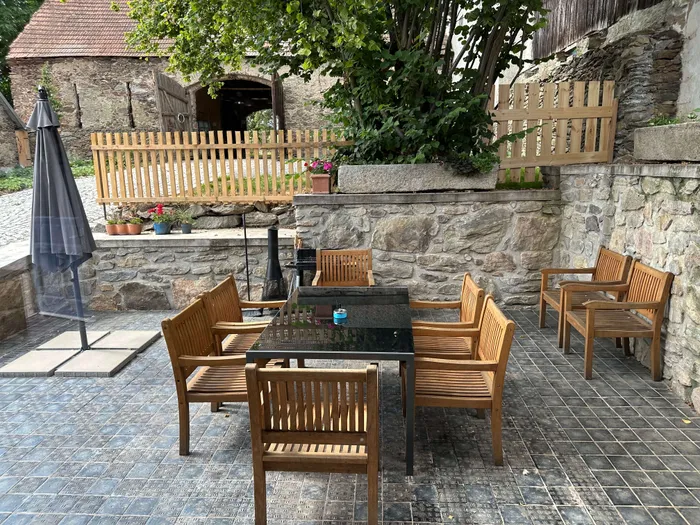Venkovní prostory nabízejí zahradu s ohništěm, posezením a terasou s možností grilování. Pro děti je připravena houpačka a pískoviště.