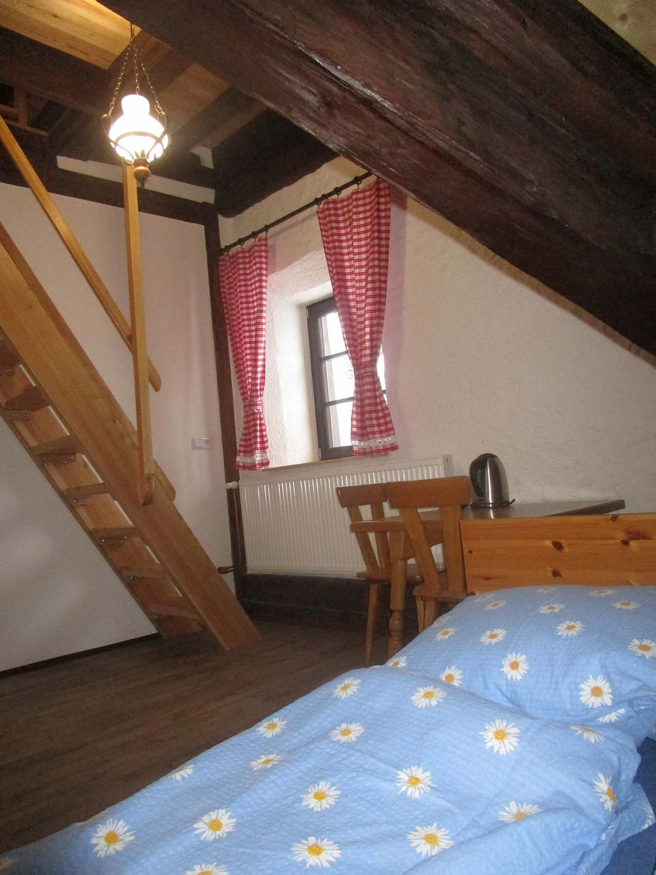 6 lůžkový pokoj - mezonet, 2lůžka dole, schodiště a 4 lůžka nahoře