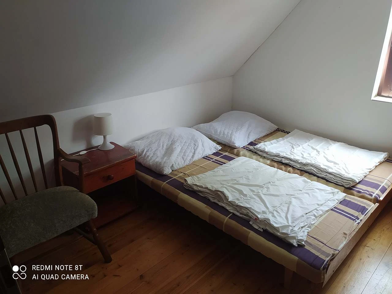 1hlavní 9lůžková (podkud možnost přendání na sebe daných až 6 lehkých pevných postelí na zvýšený počet z 2 lůžkových ložnic), jinak 3 dvojlůžkové, navíc rozkládací sedačka v obývacím pokoji. Možnost přendání lehkých pevných nových postelí z Ikey do 2lůžkových ložnic. Větší počet dek i polštářů. Možnost výběru slabších, či silnějších.