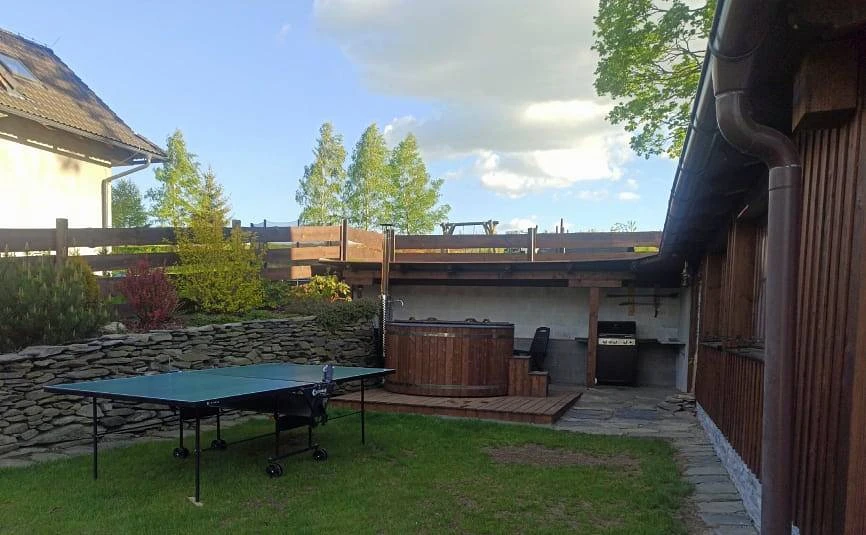 V chalupě platí zákaz kouření. K dispozici infrasauna (za příplatek 1 000 Kč + energie), horký sud s tryskami (za příplatek 2 000 Kč), stolní fotbálek, šipky, stolní tenis a venkovní hřiště pro děti. Parkování je možné před objektem.