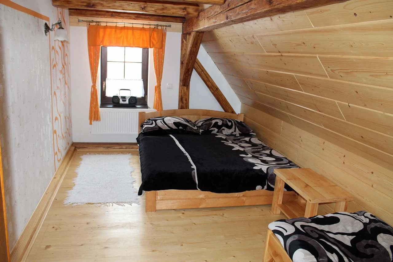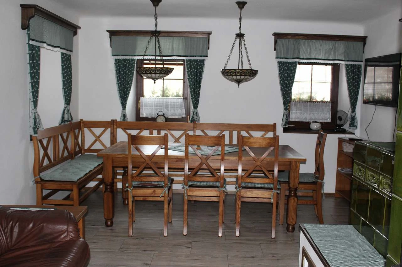 V přízemí se nachází dvoulůžkový pokoj, dvě koupelny se sprchou a WC, jídelna s kuchyní a kachlovými kamny. V prvním patře jsou tři třílůžkové pokoje (jeden s přistýlkou a vlastním WC). V podkroví je šestilůžkový pokoj. Po domluvě lze zapůjčit dvě dětské postýlky.