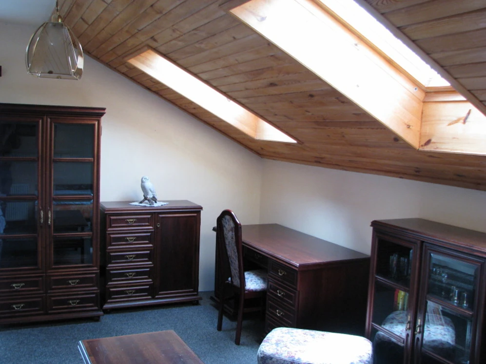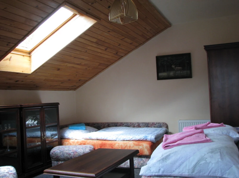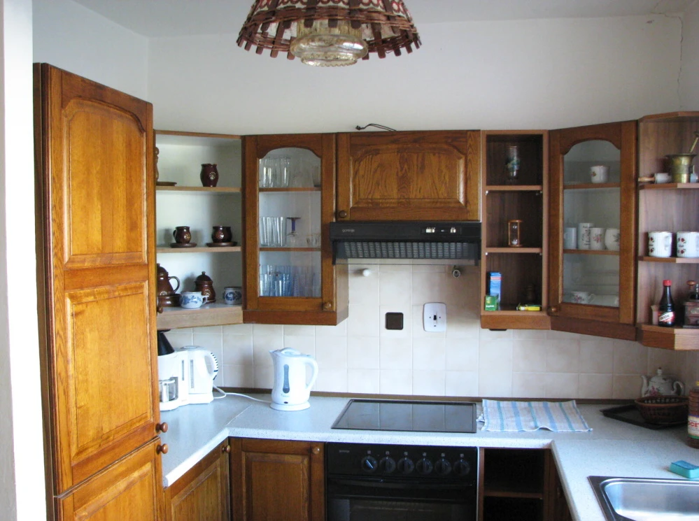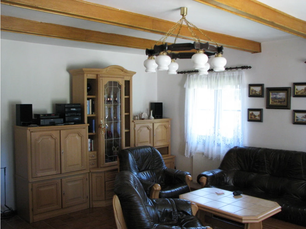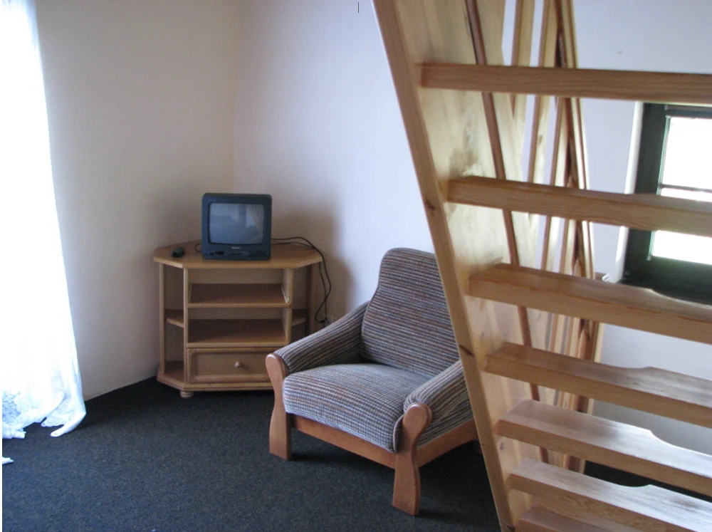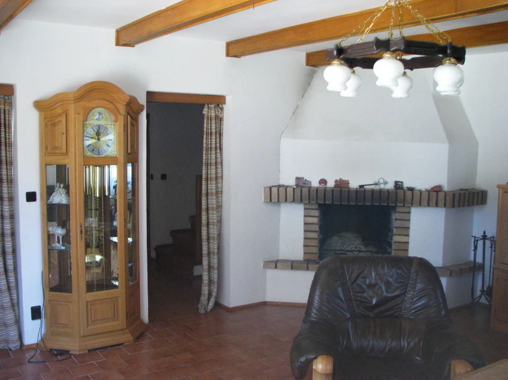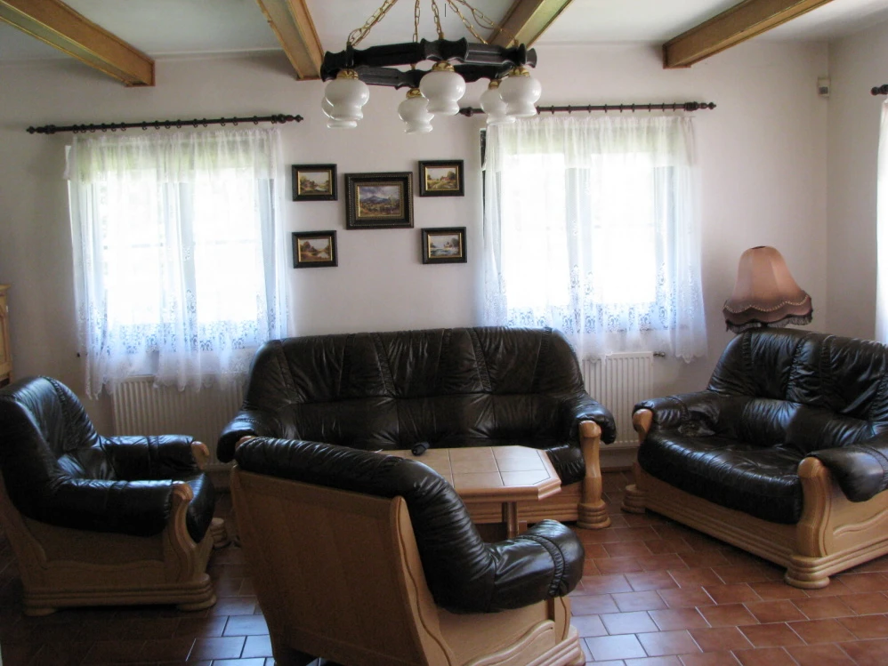 V přízemí se nachází útulný obývací pokoj s krbem a plně vybavená kuchyň (elektrická trouba, keramická varná deska, lednice, kávovar, rychlovarná konvice, myčka). K dispozici je také slunná terasa, kde si můžete odpočinout nebo posedět s přáteli. Pro větší pohodlí jsou v chalupě tři toalety a dvě koupelny – jedna s vířivou vanou, druhá se sprchovým hydromasážním boxem. Vytápění objektu je zajištěno plynovým kotlem s možností regulace teploty.