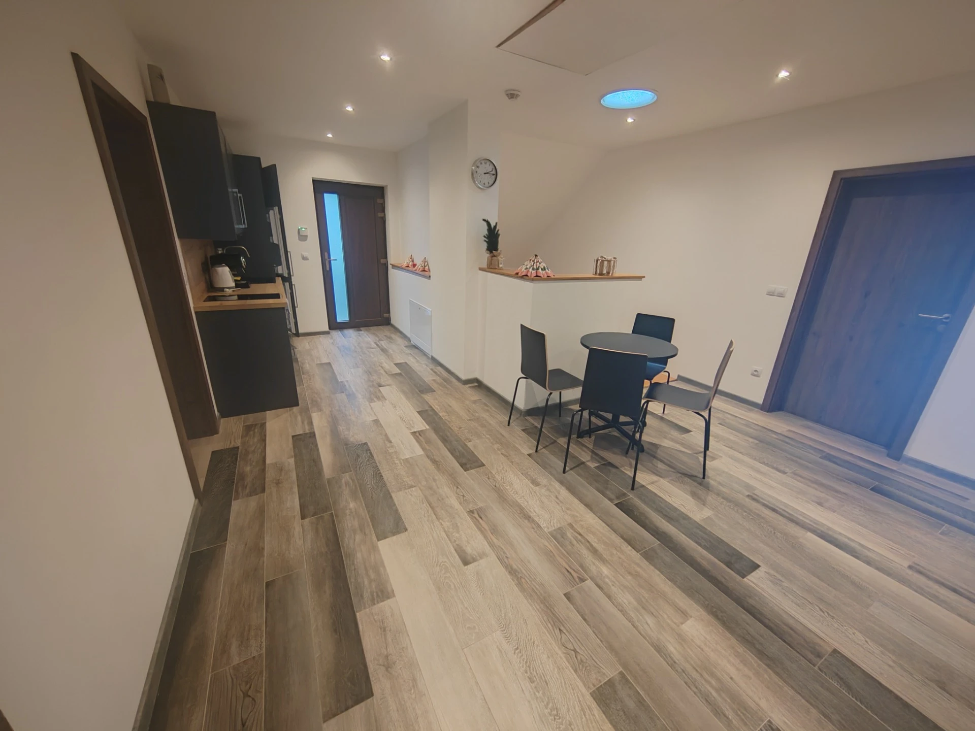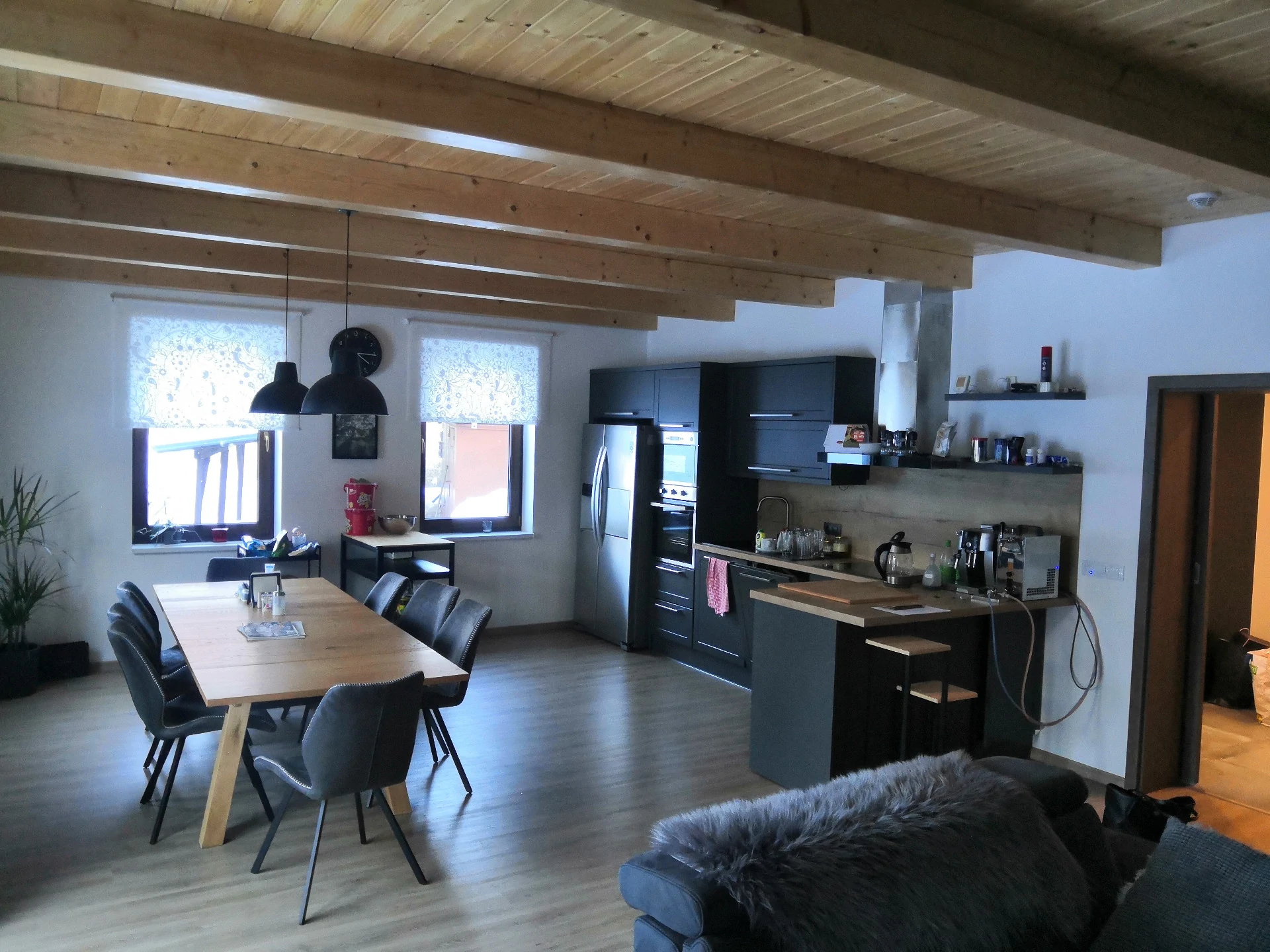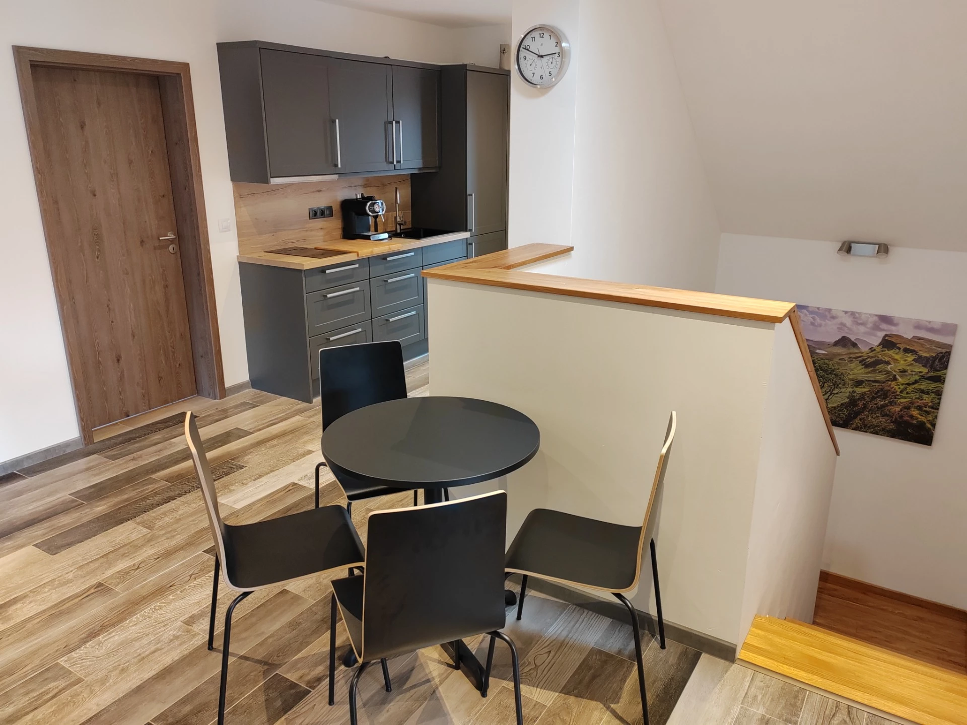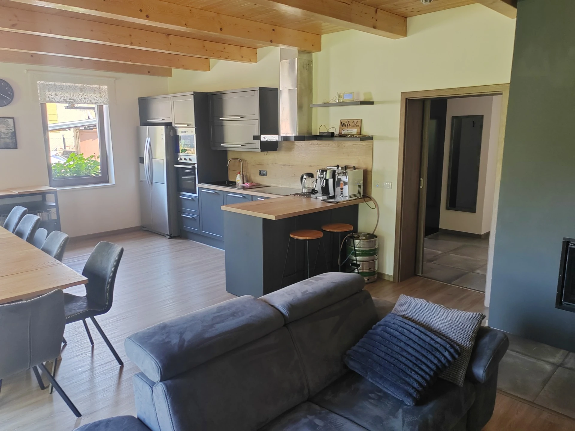 - K dispozici je plně vybavená kuchyně v přízemí (indukční deska, trouba, myčka, lednice s mrazákem, kávovar, a další spotřebiče) a menší kuchyňka v patře.