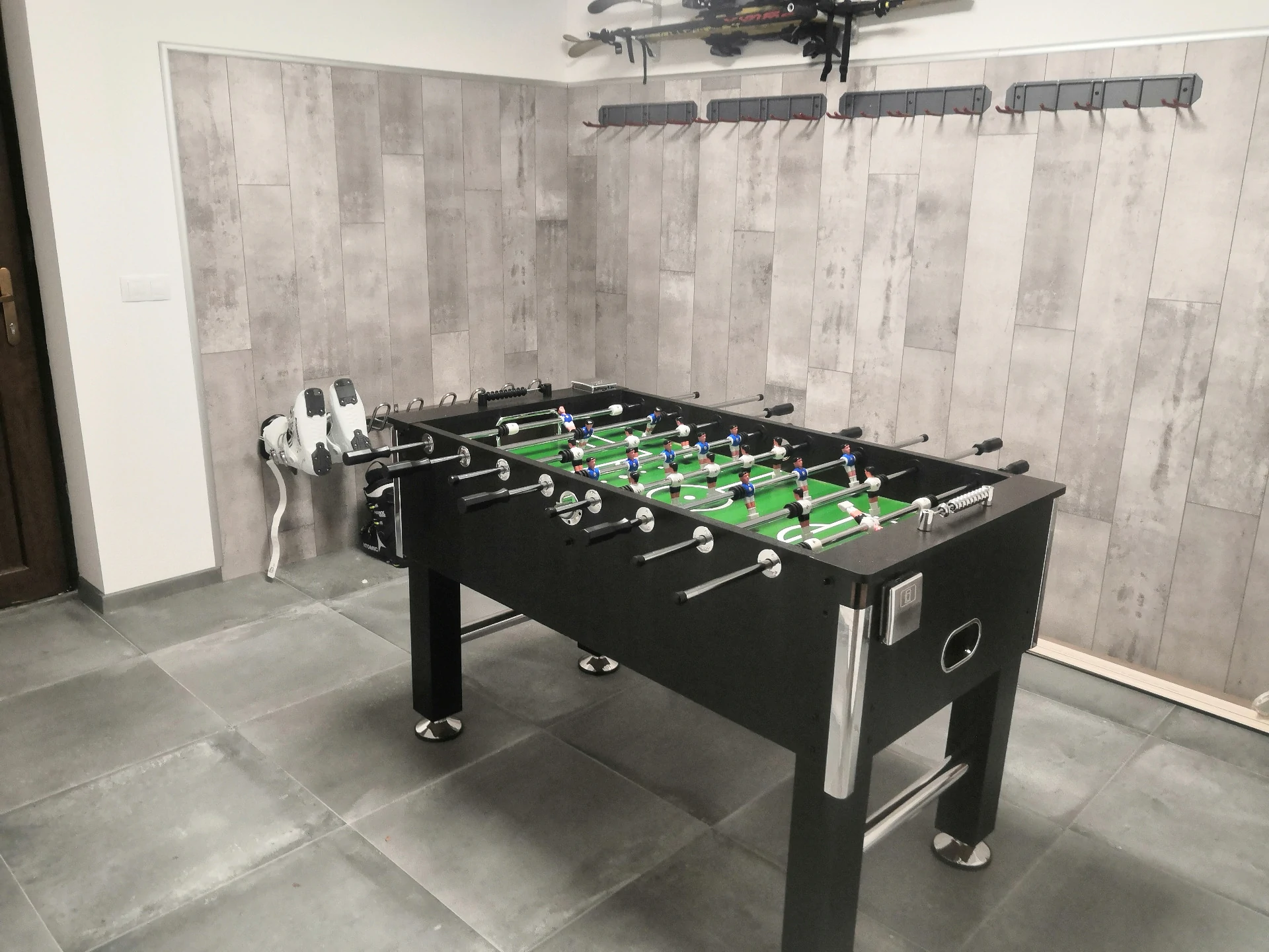 - Lyžárna s minifotbálkem a minipingpongem, technická místnost s pračkou.